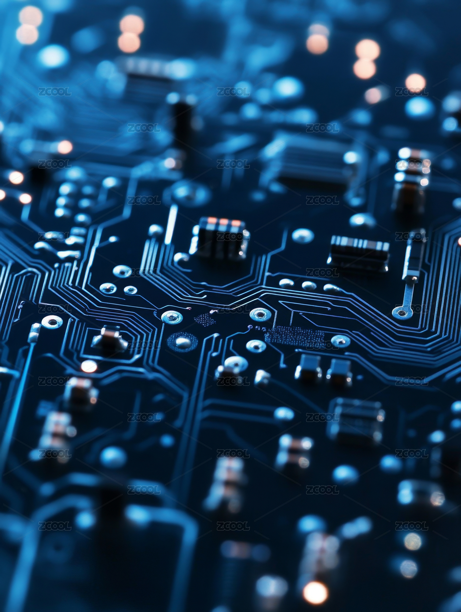 蓝色电路板特写