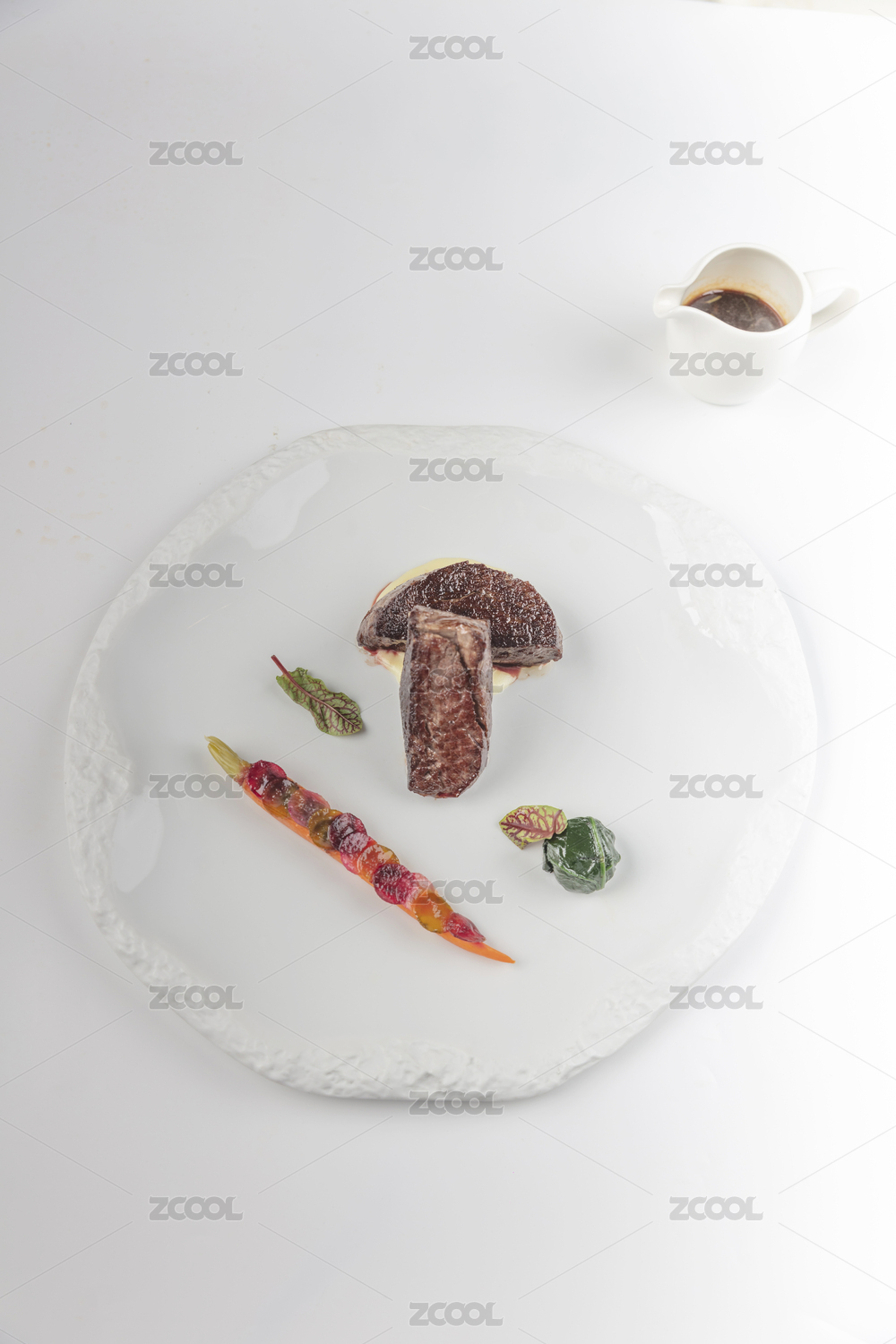 精美餐具装的法式铁板酱汁野猪肉排
