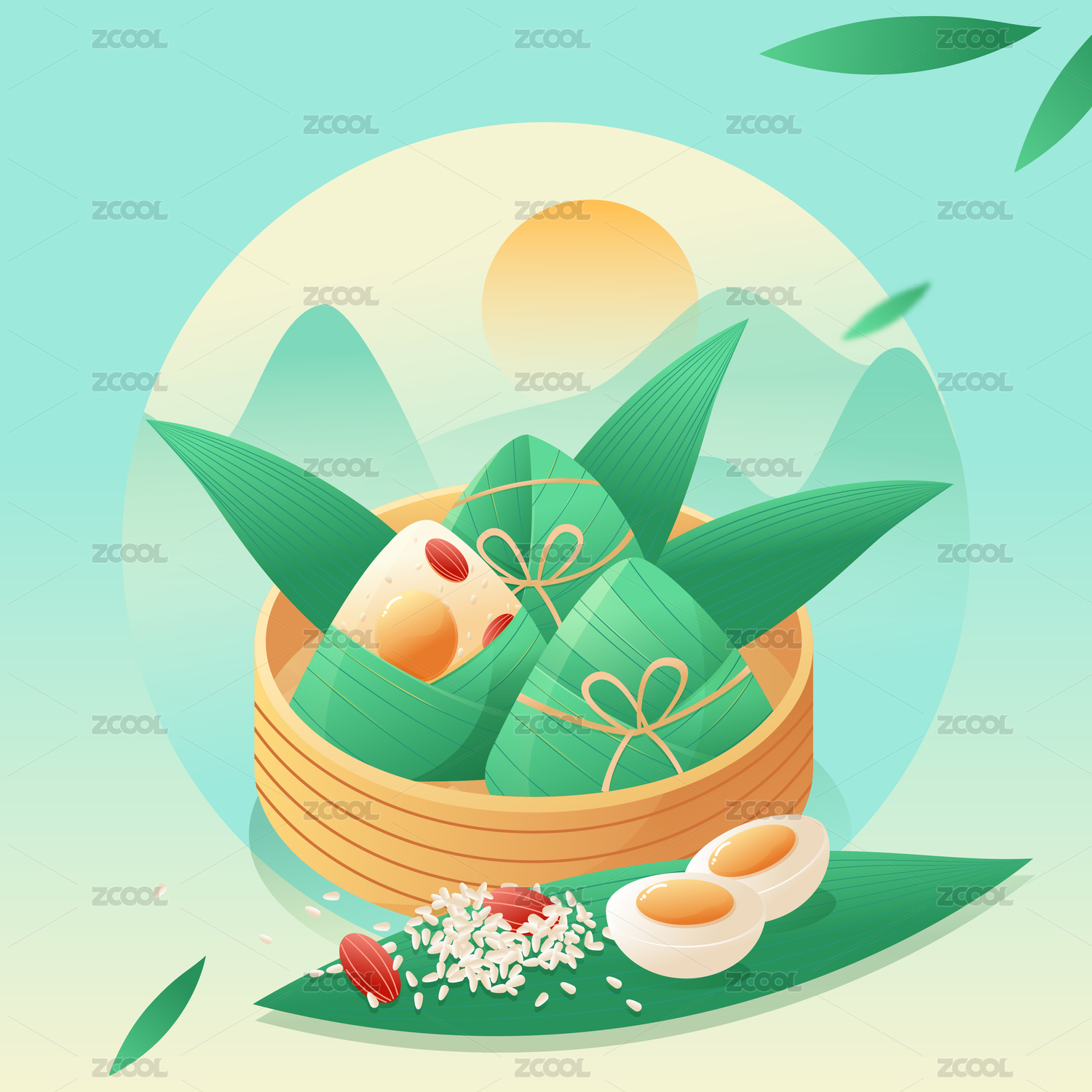 端午一笼粽子插画