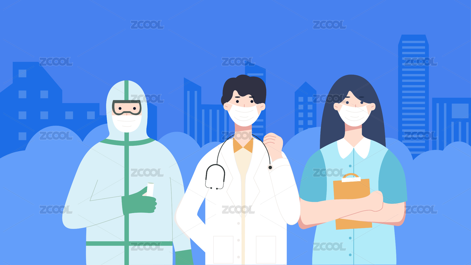 卡通医院医生护士口罩疫情预防矢量插图素材