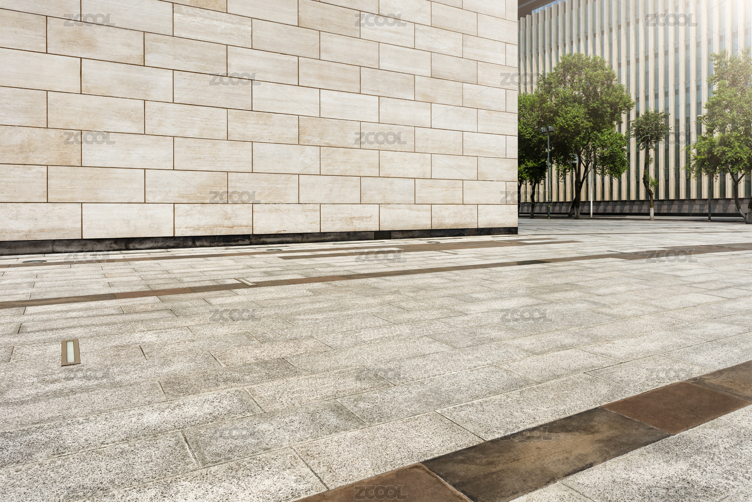 现代城市商务区广场砖地背景图