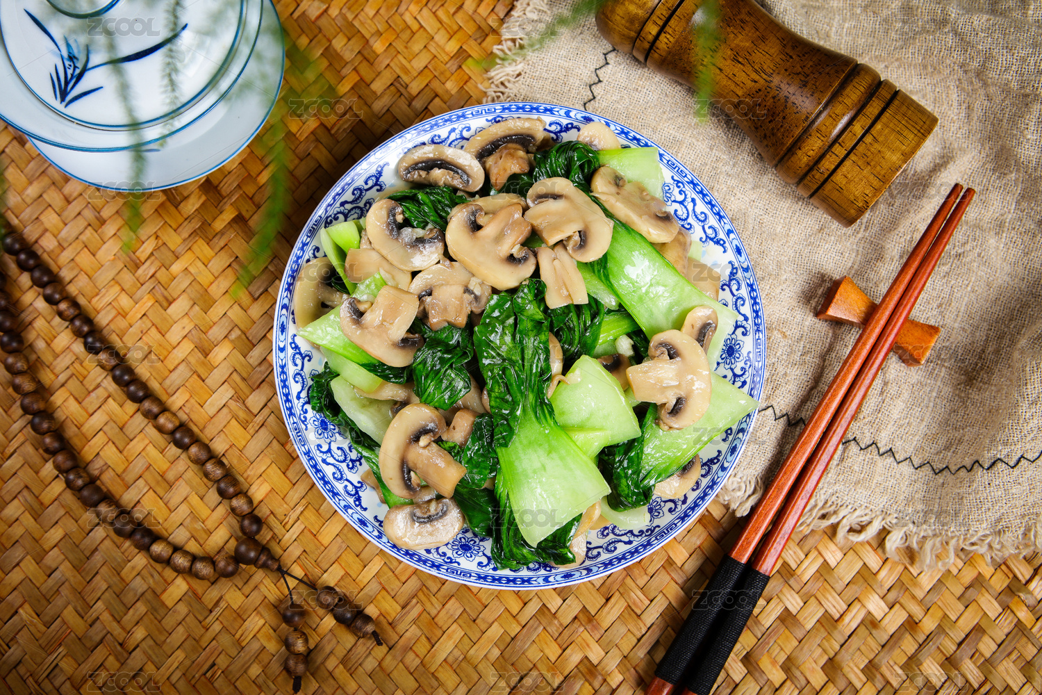 快餐外卖菜肴美食小炒青菜白蘑菇