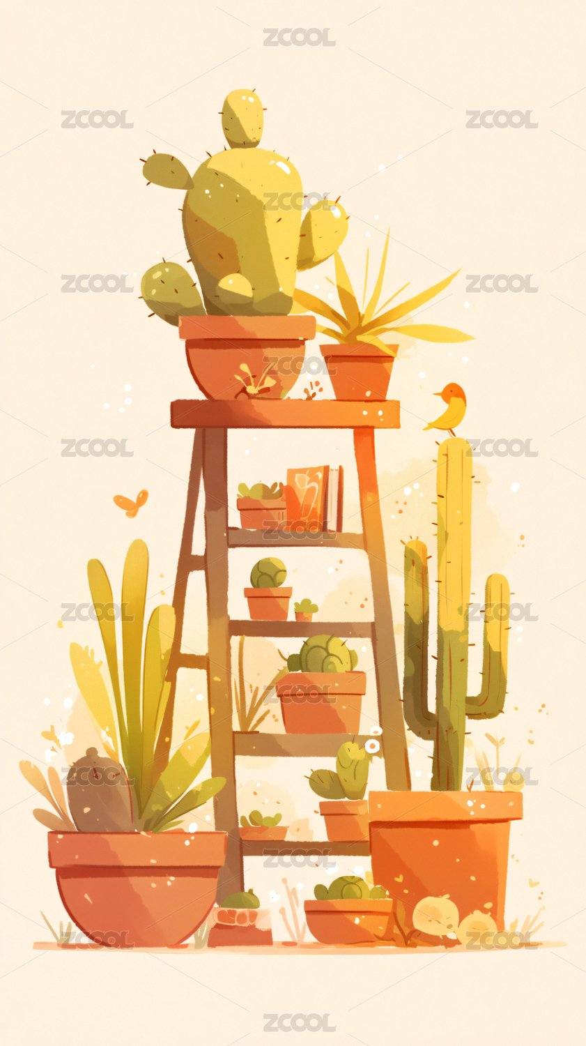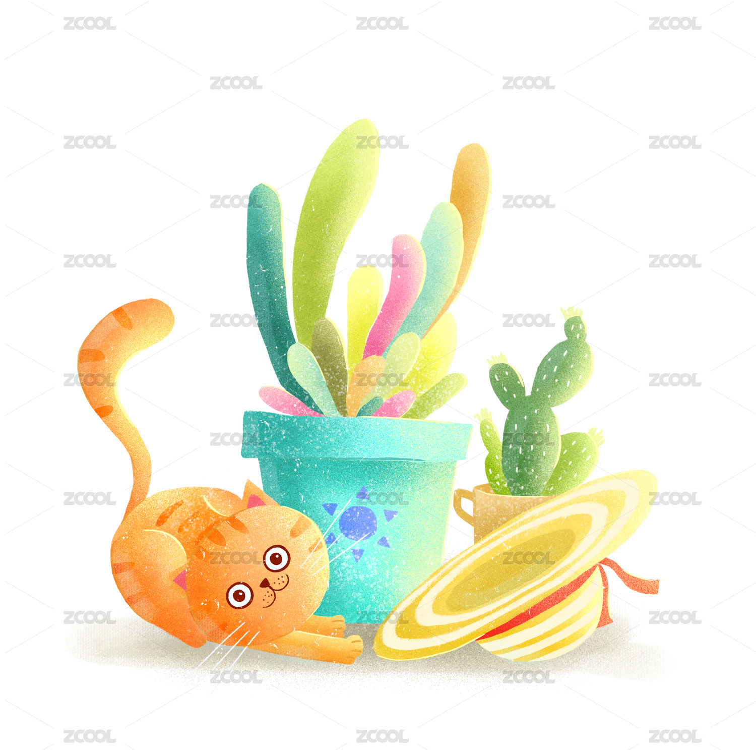 黄色小猫躲在盆栽后面偷偷伸出爪子抓帽子