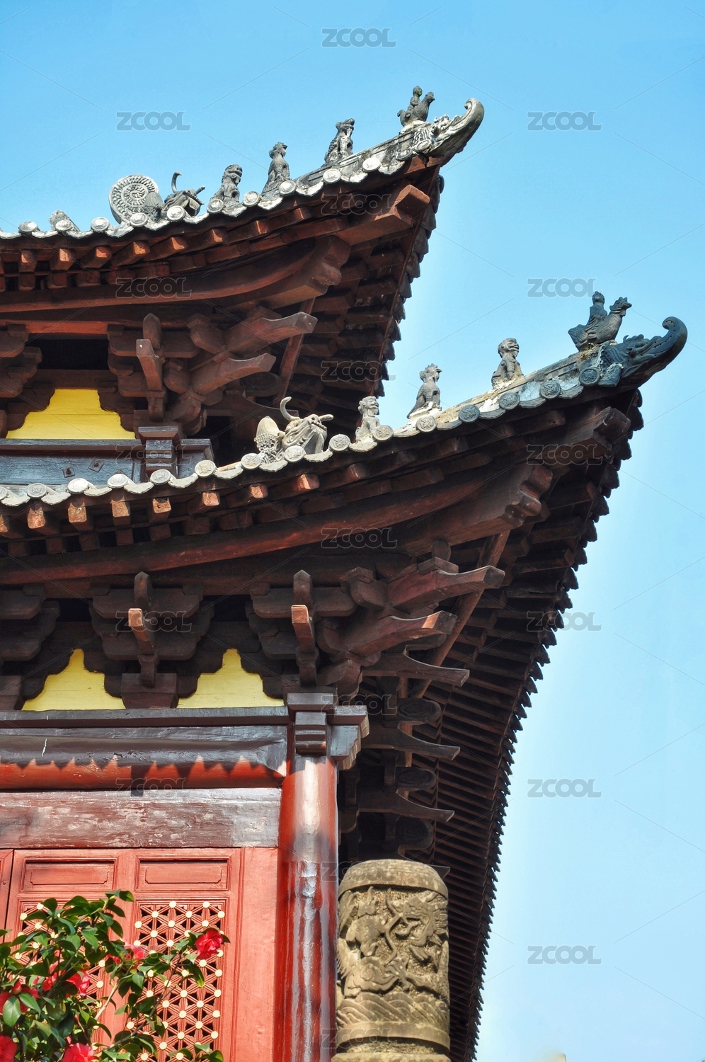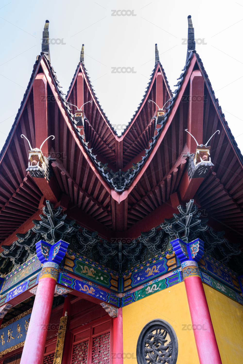 蓝天下的深山故宫-四川省平武县报恩寺屋檐铃铛特写
