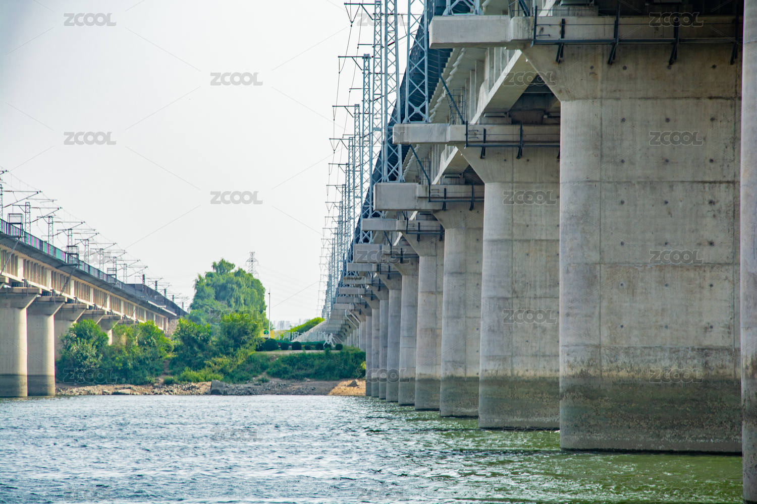 穿过桥梁河道的高铁