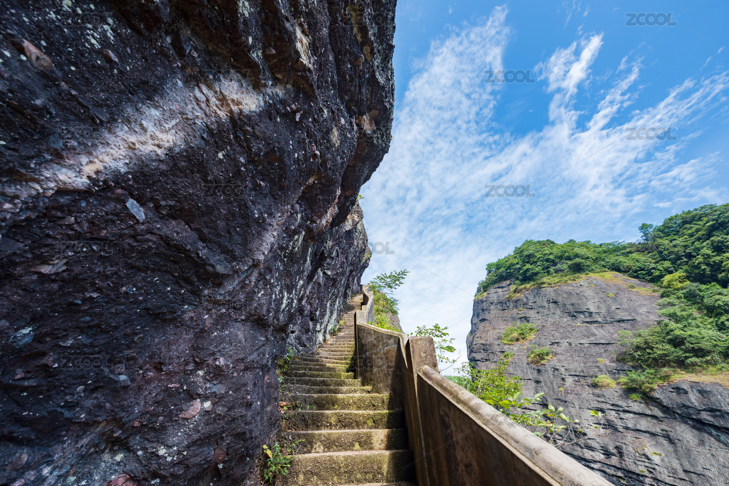 中国福建省武夷山,大王峰景区中崎岖陡峭的登山道