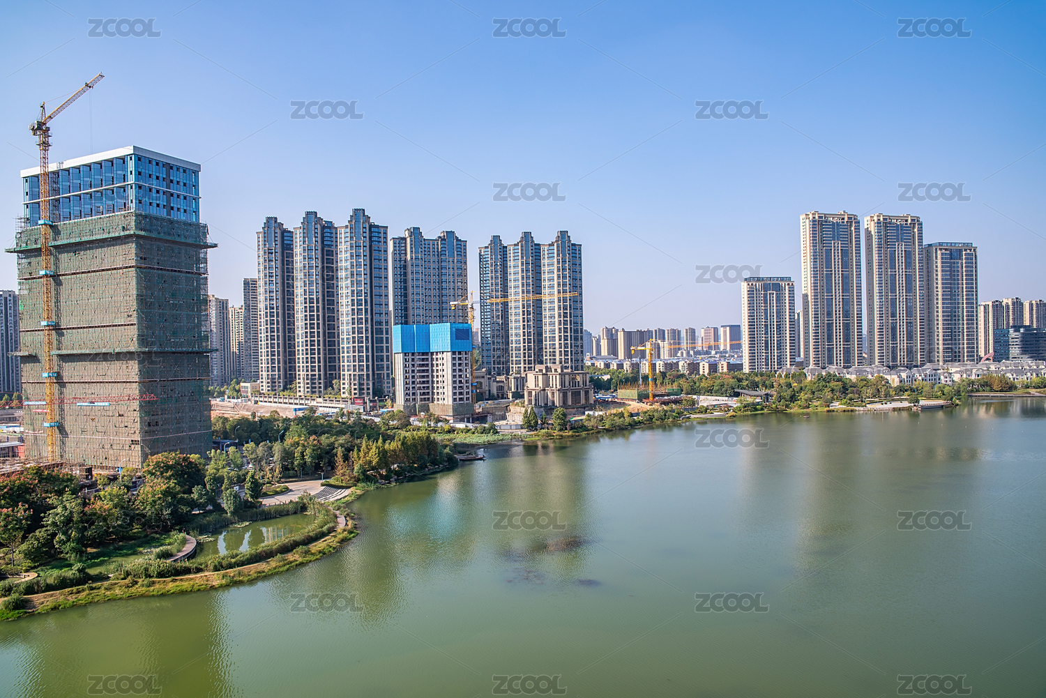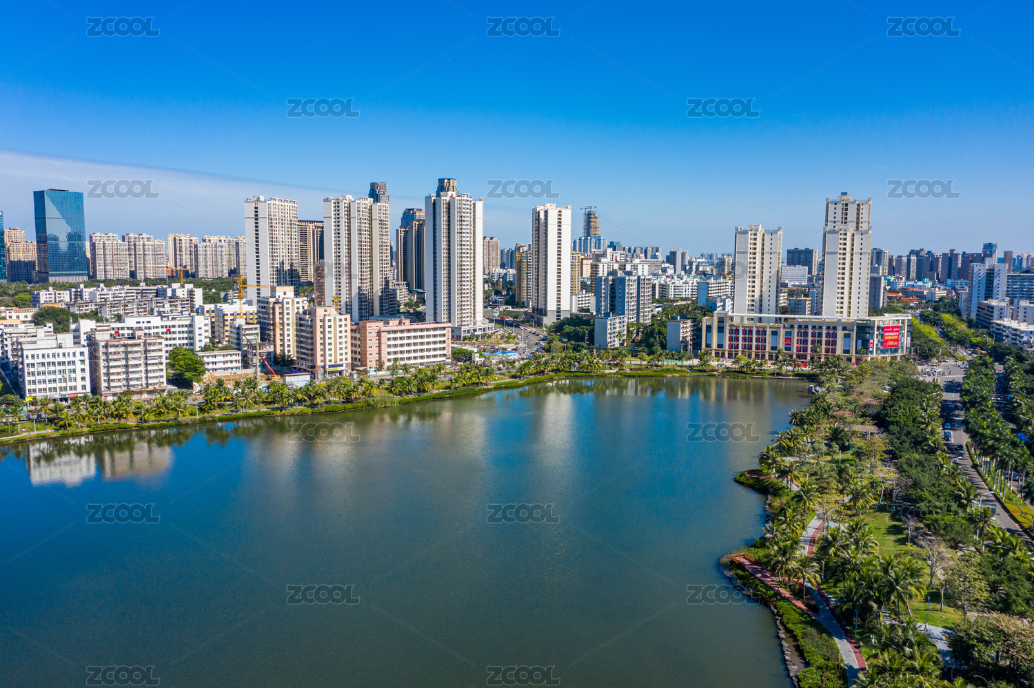 梅溪湖,长沙,城市,航拍,玻璃幕墙,高楼,梅溪湖城市岛,水面,蓝天,白天