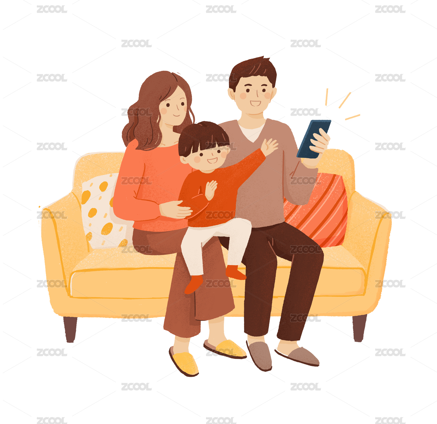 手机视频拍照家人插画