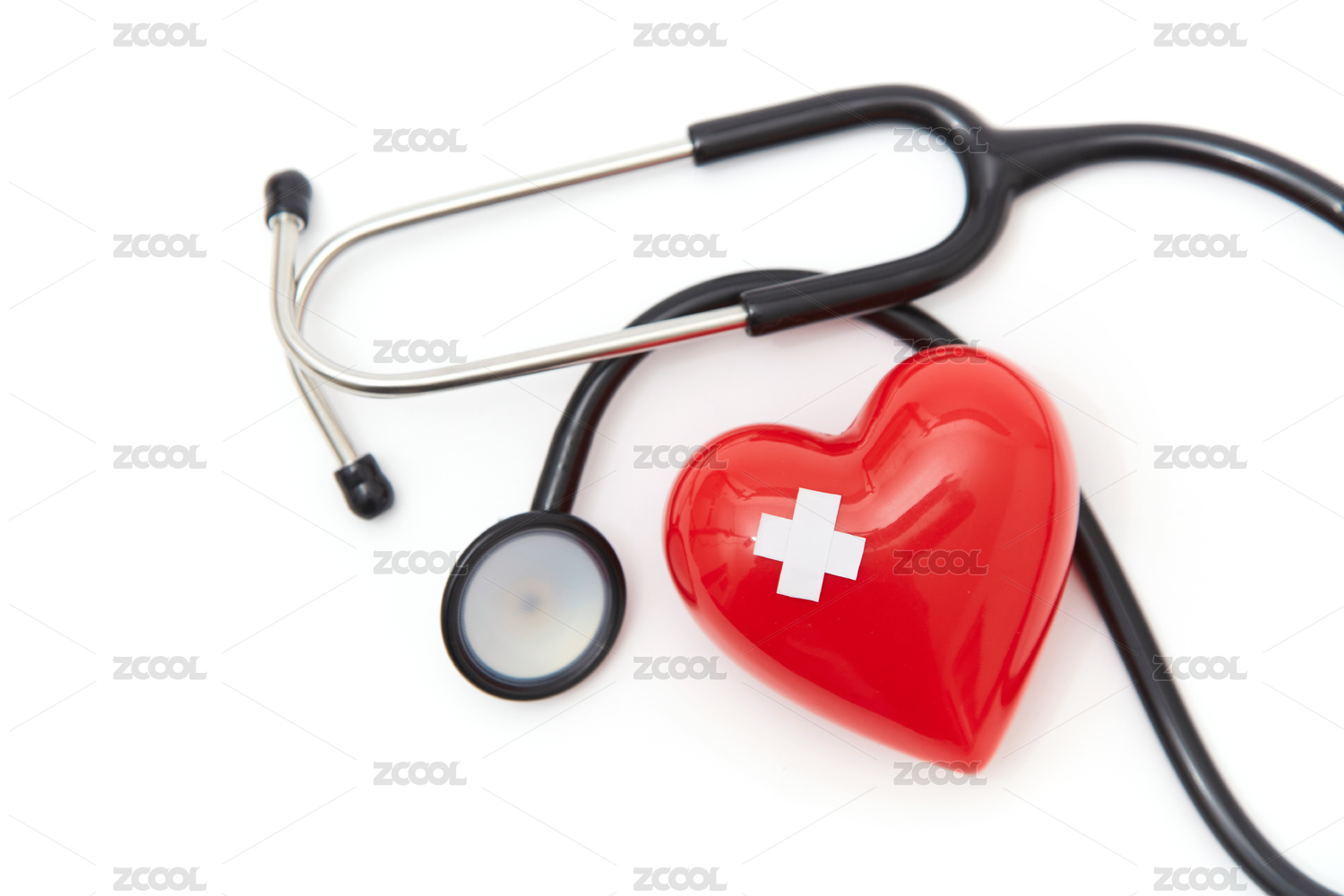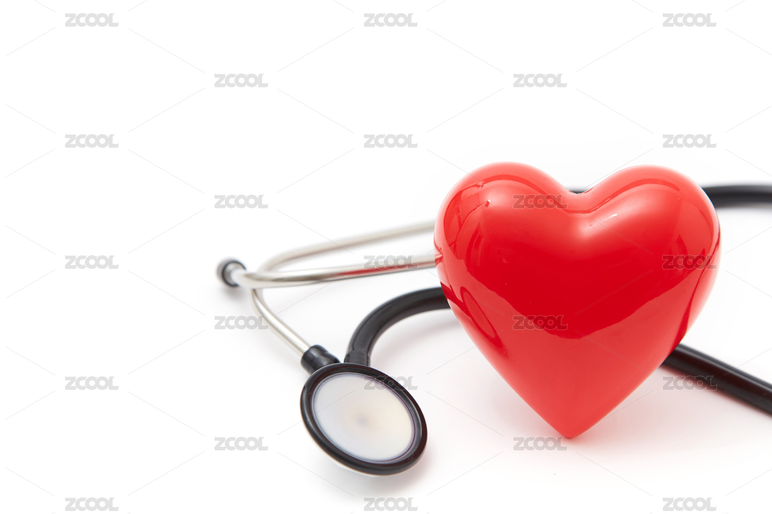 红心和听诊器放在白色背景上