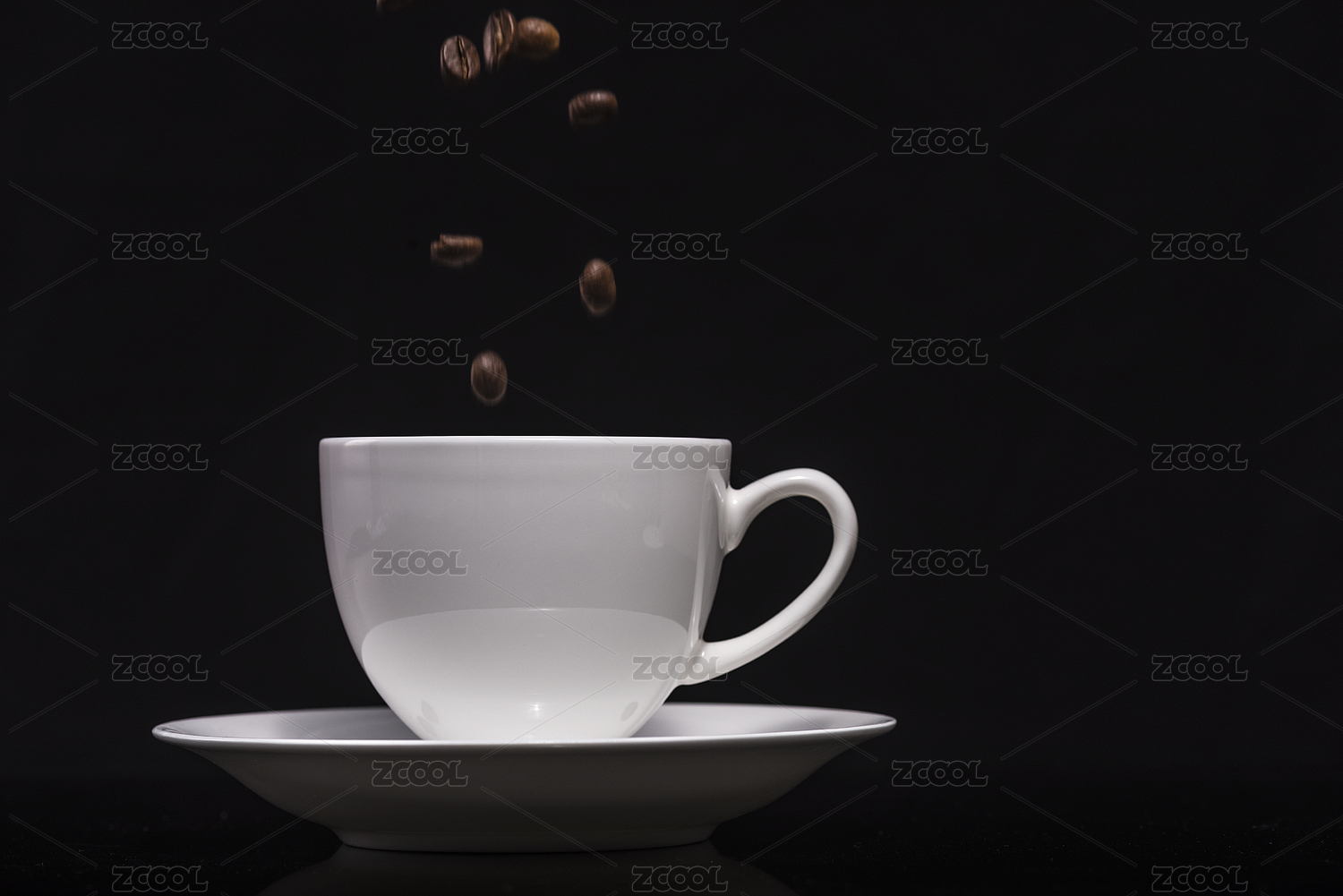 咖啡,咖啡豆,杯子,黑底,一堆豆子,食物