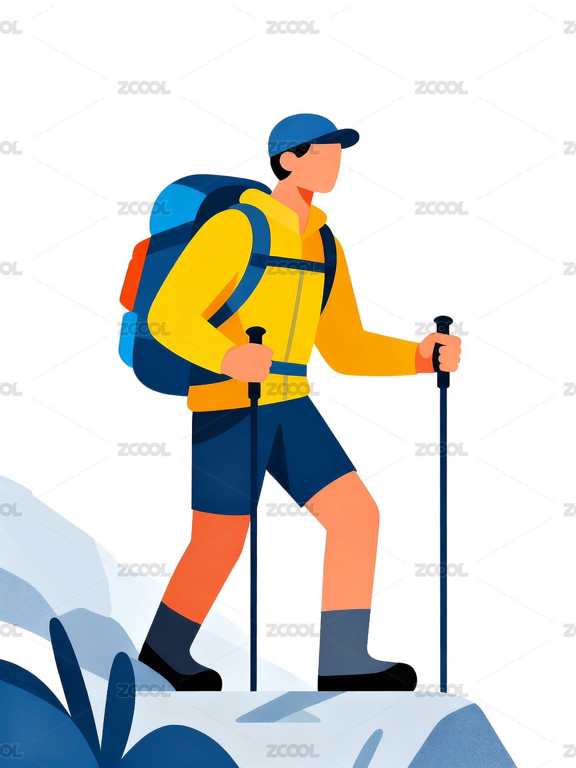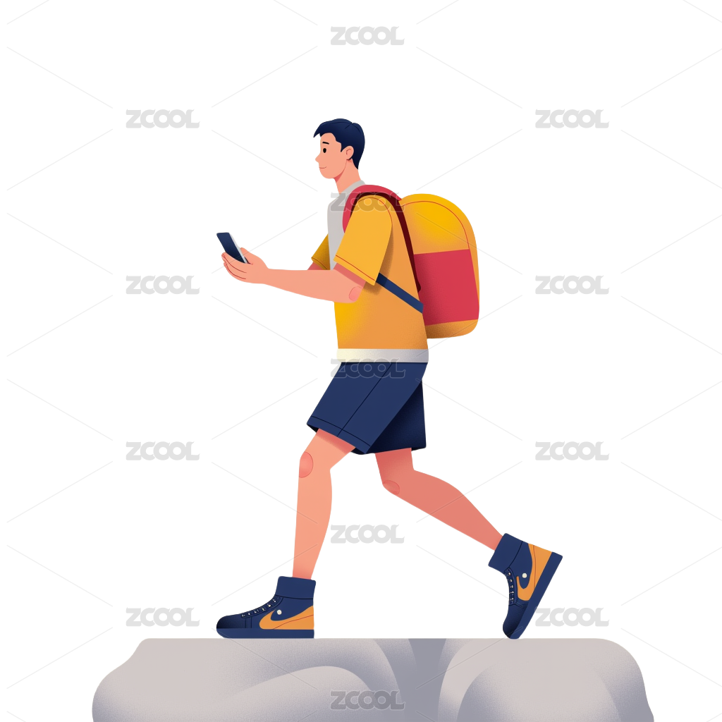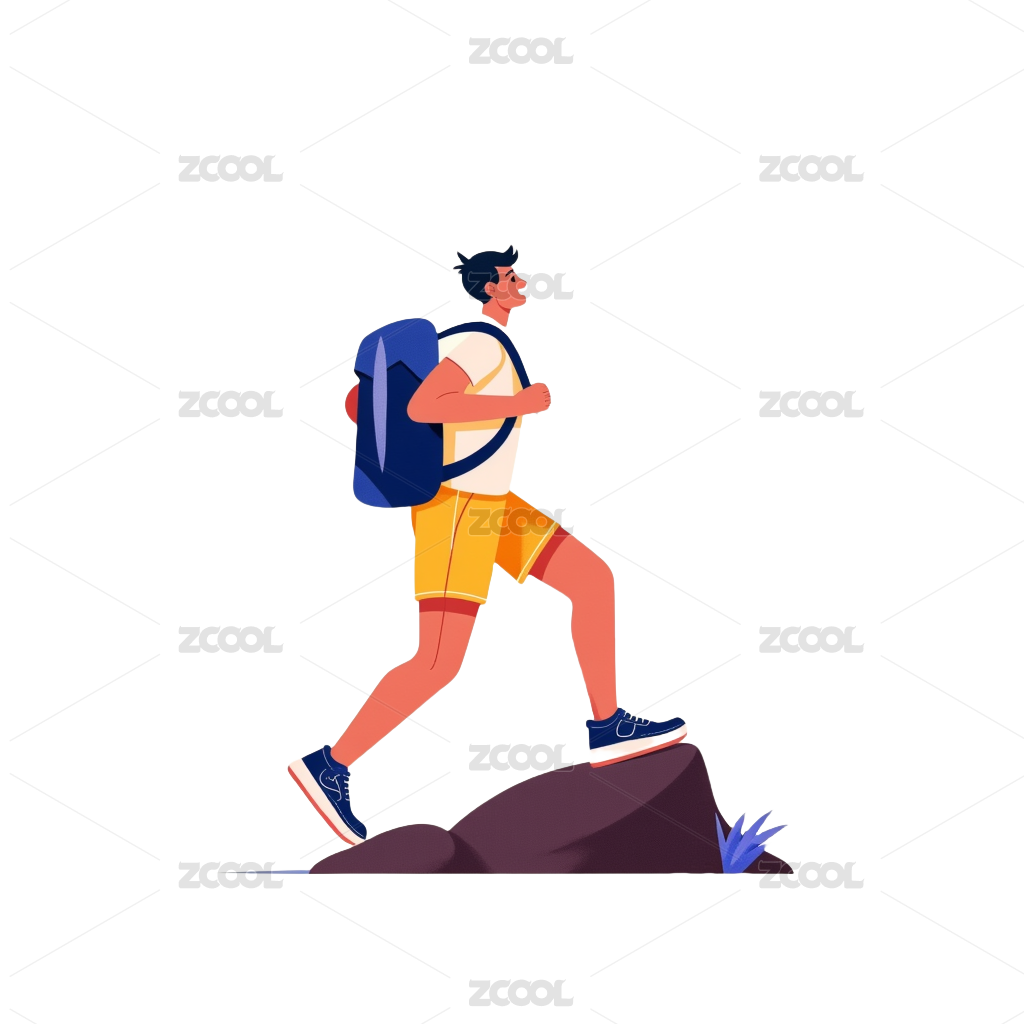 扁平绘卡通徒步人物元素