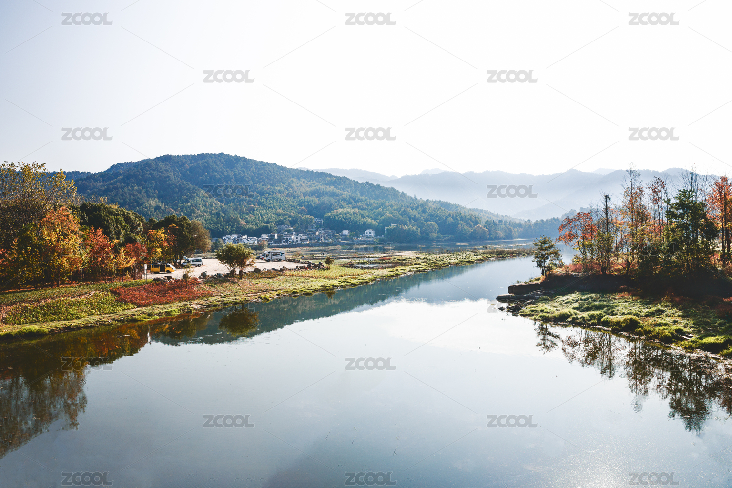中国武汉罗田河西畈村水上红叶景区自然风光