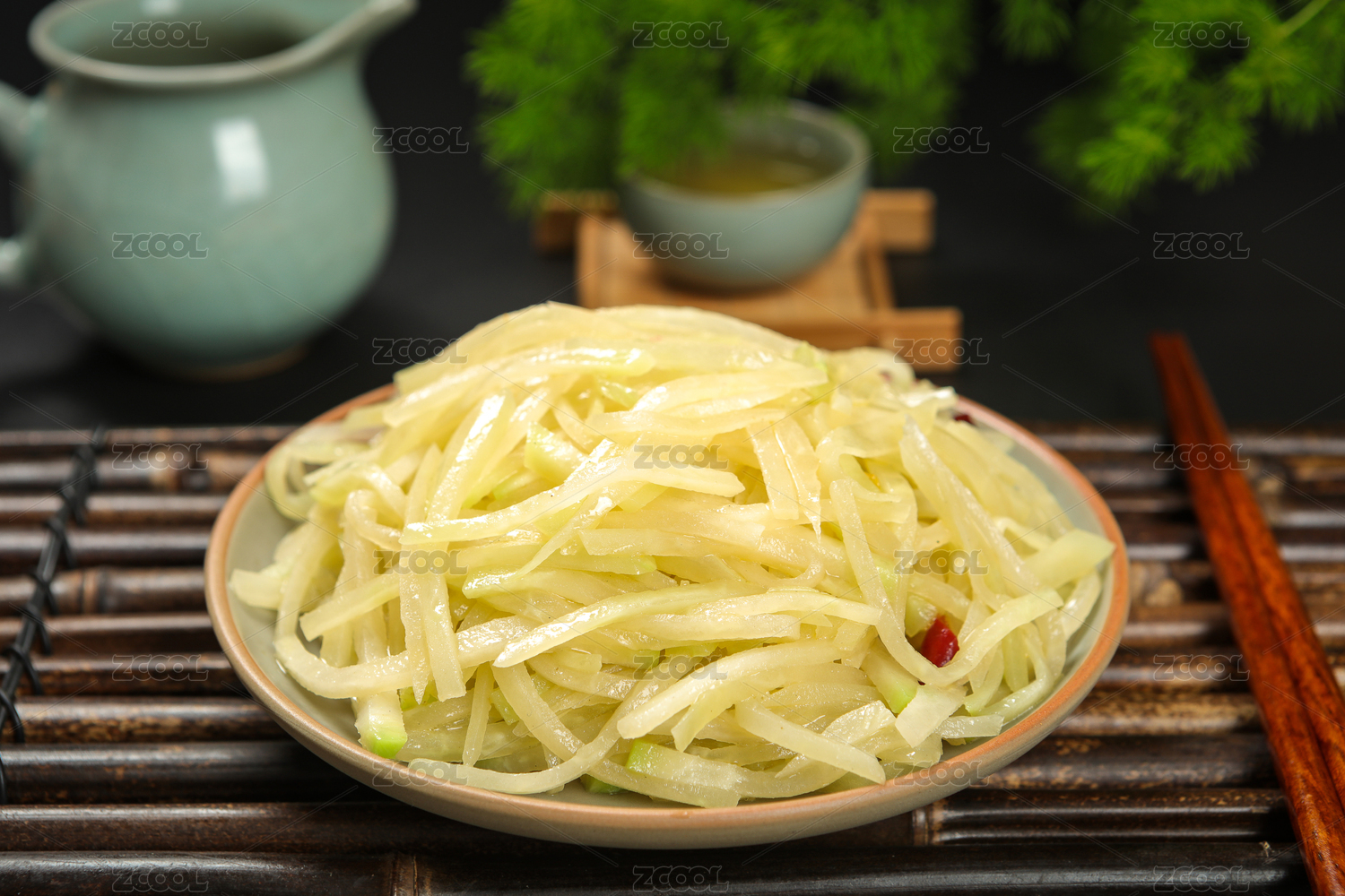 餐具里摆放的酸辣土豆丝