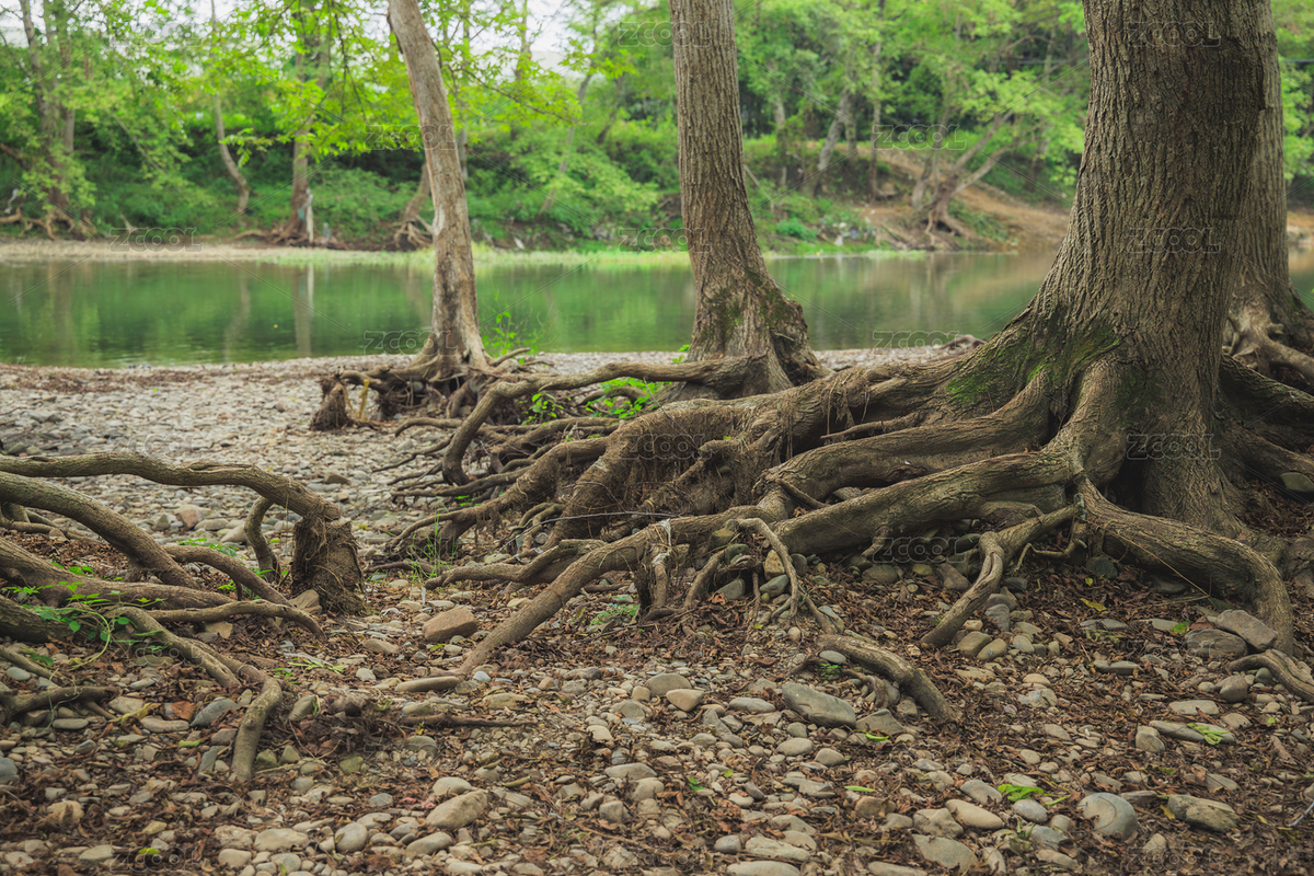 安徽省黄山市黟县西溪南古村湿地,树的根长