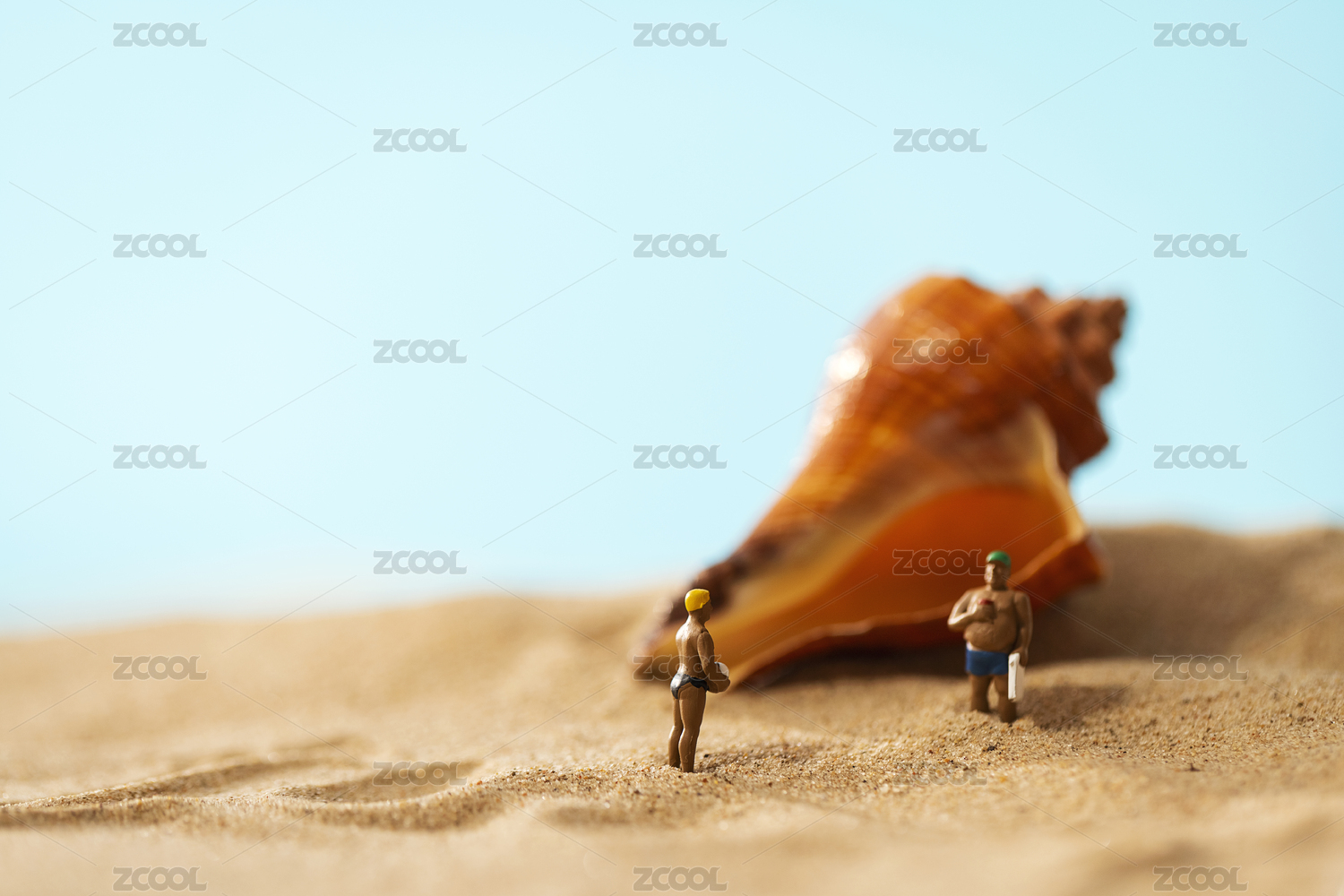 沙滩上的螺壳和旅行者微缩模型