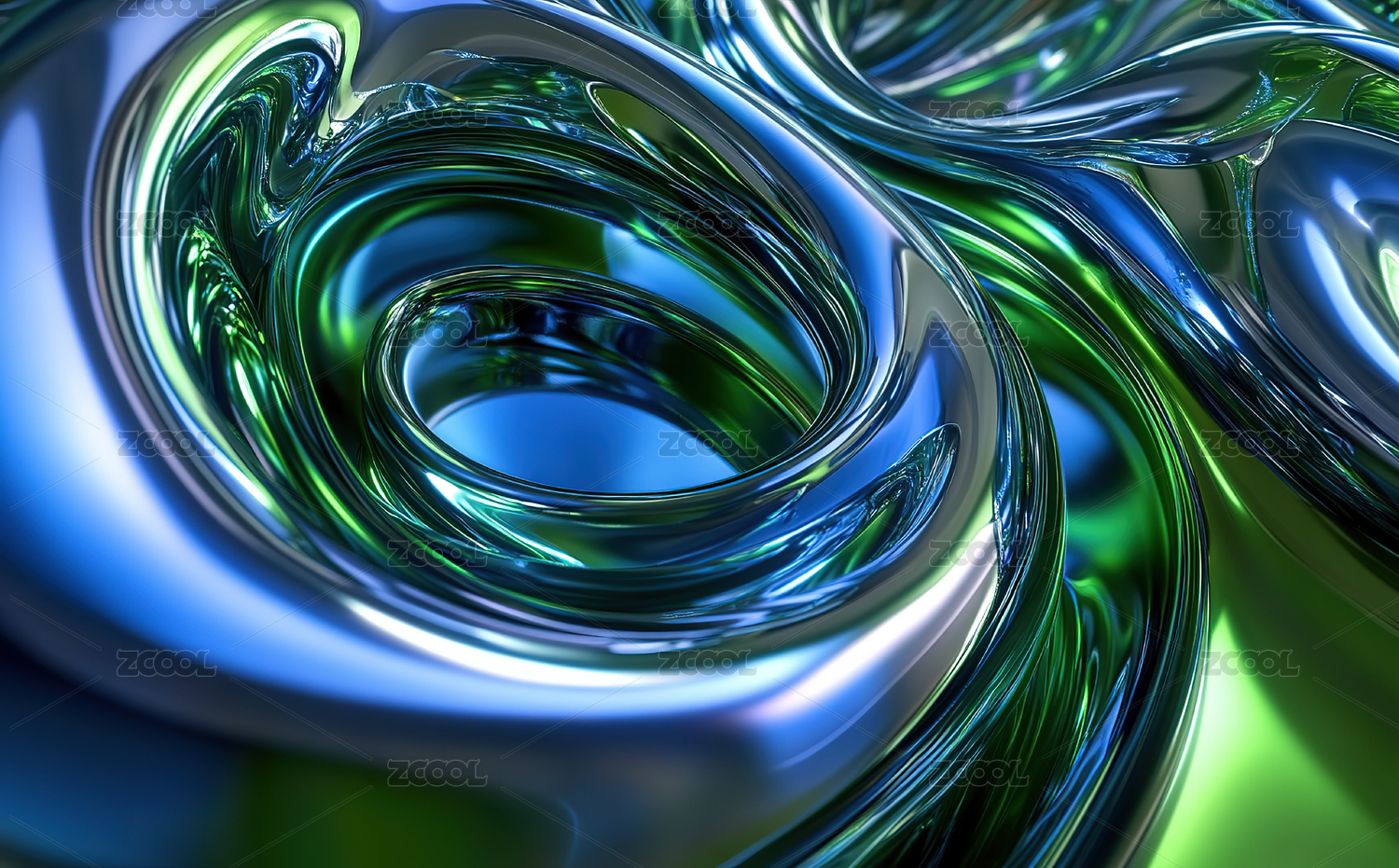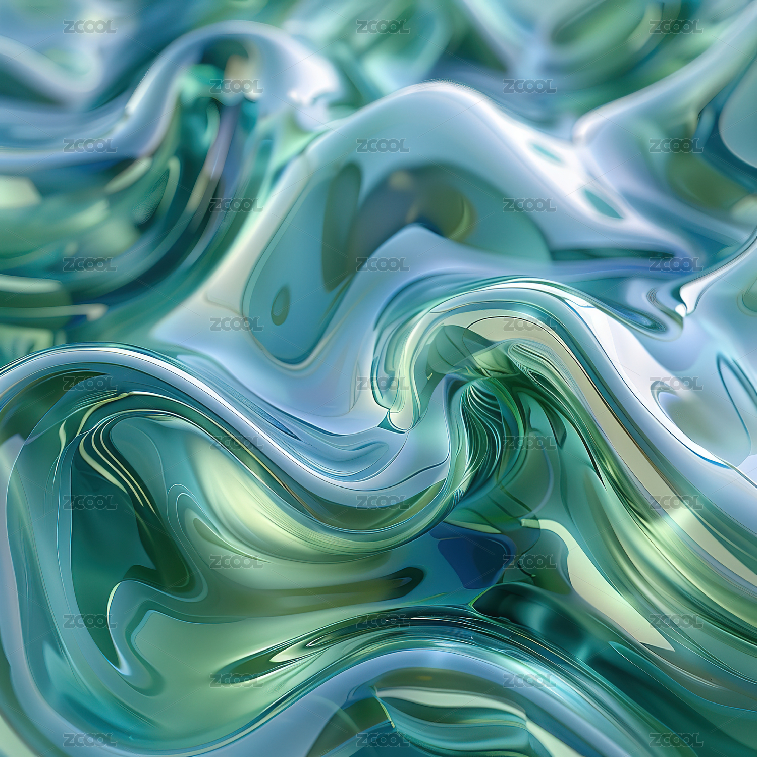 时尚波纹动感高档绿色混色流体渐变抽象背景