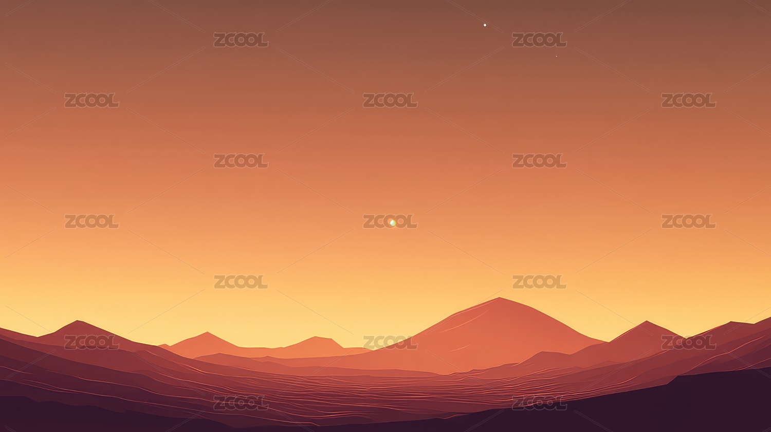 日落时群山对天的景色
