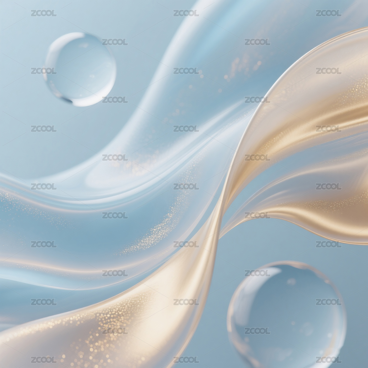 蓝色水滴和透明玻璃曲线背景3D渲染