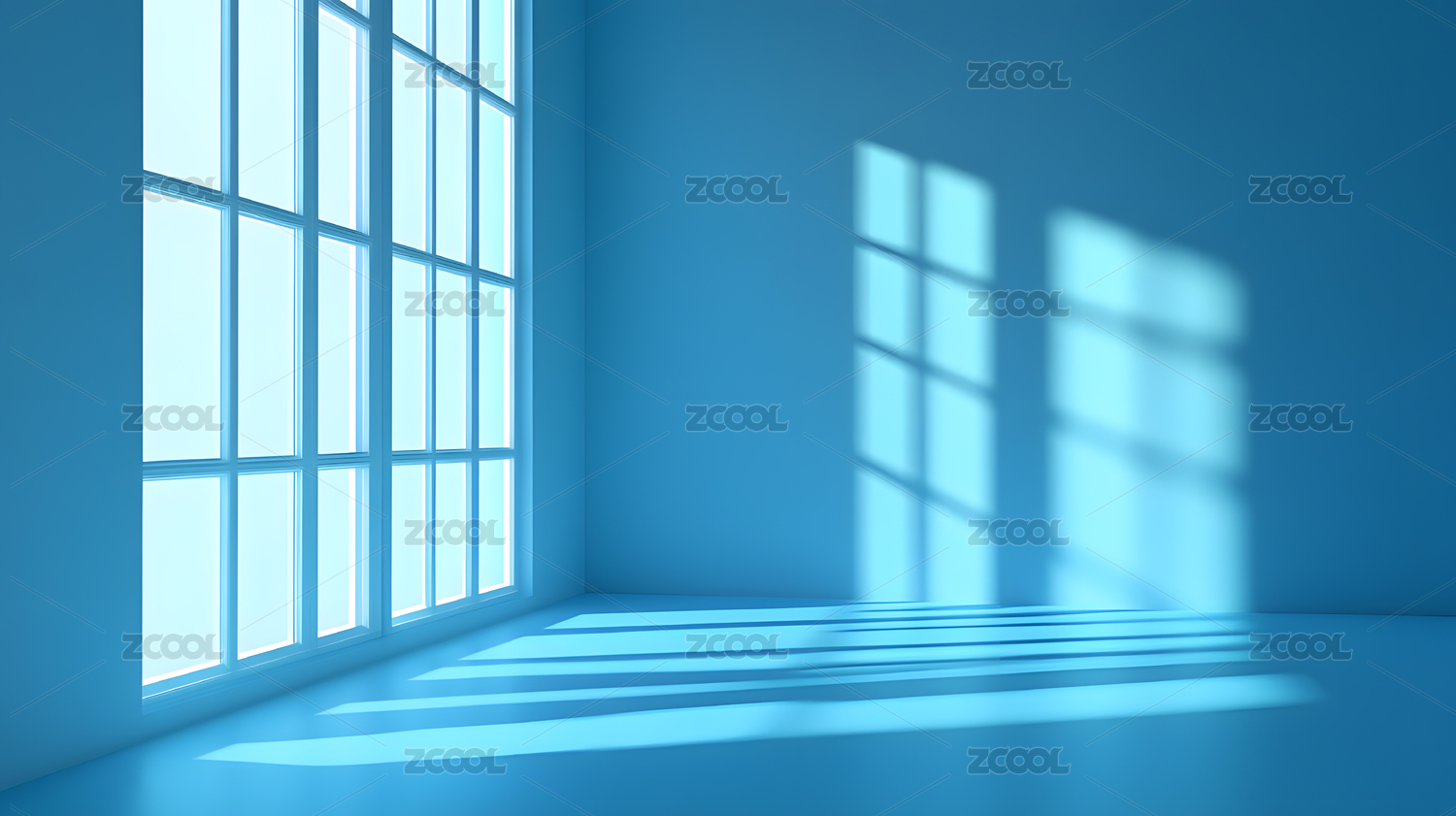 蓝色墙壁窗户的光影效果