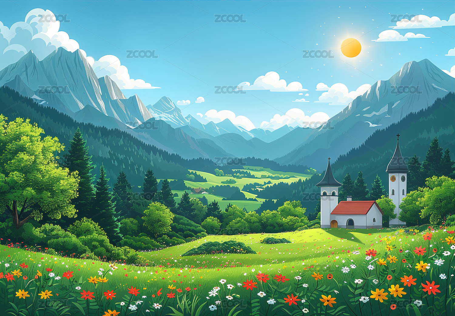 户外,高山,白昼,风景,自然,天空,宁静,水,建筑,旅游