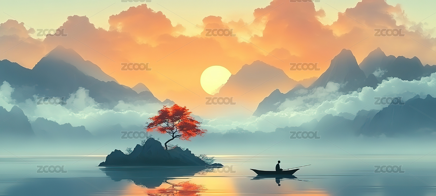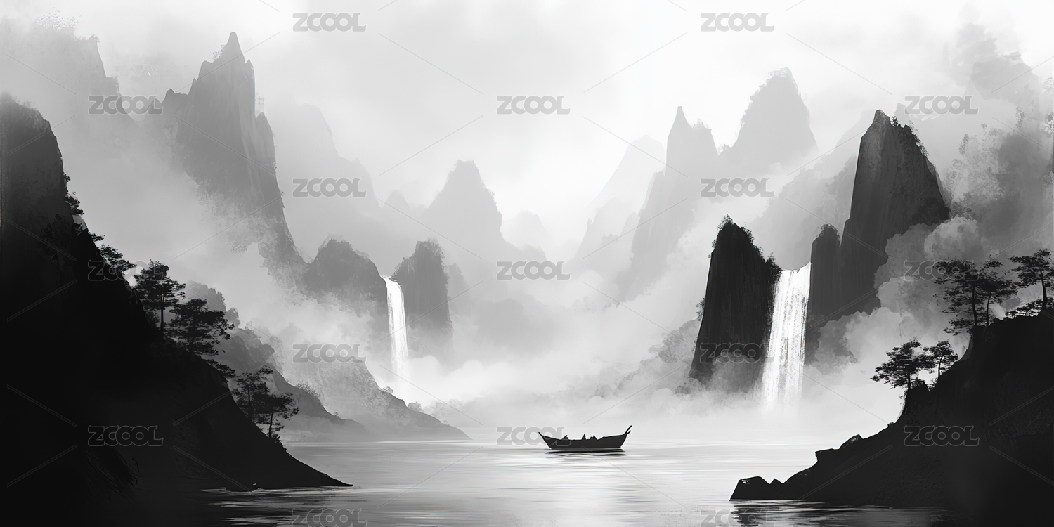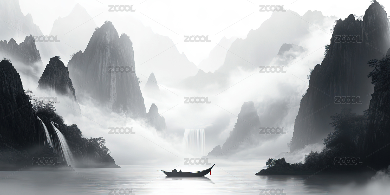 高山,地形,无人,AI数字艺术,自然,户外,天空,宁静,水,雾