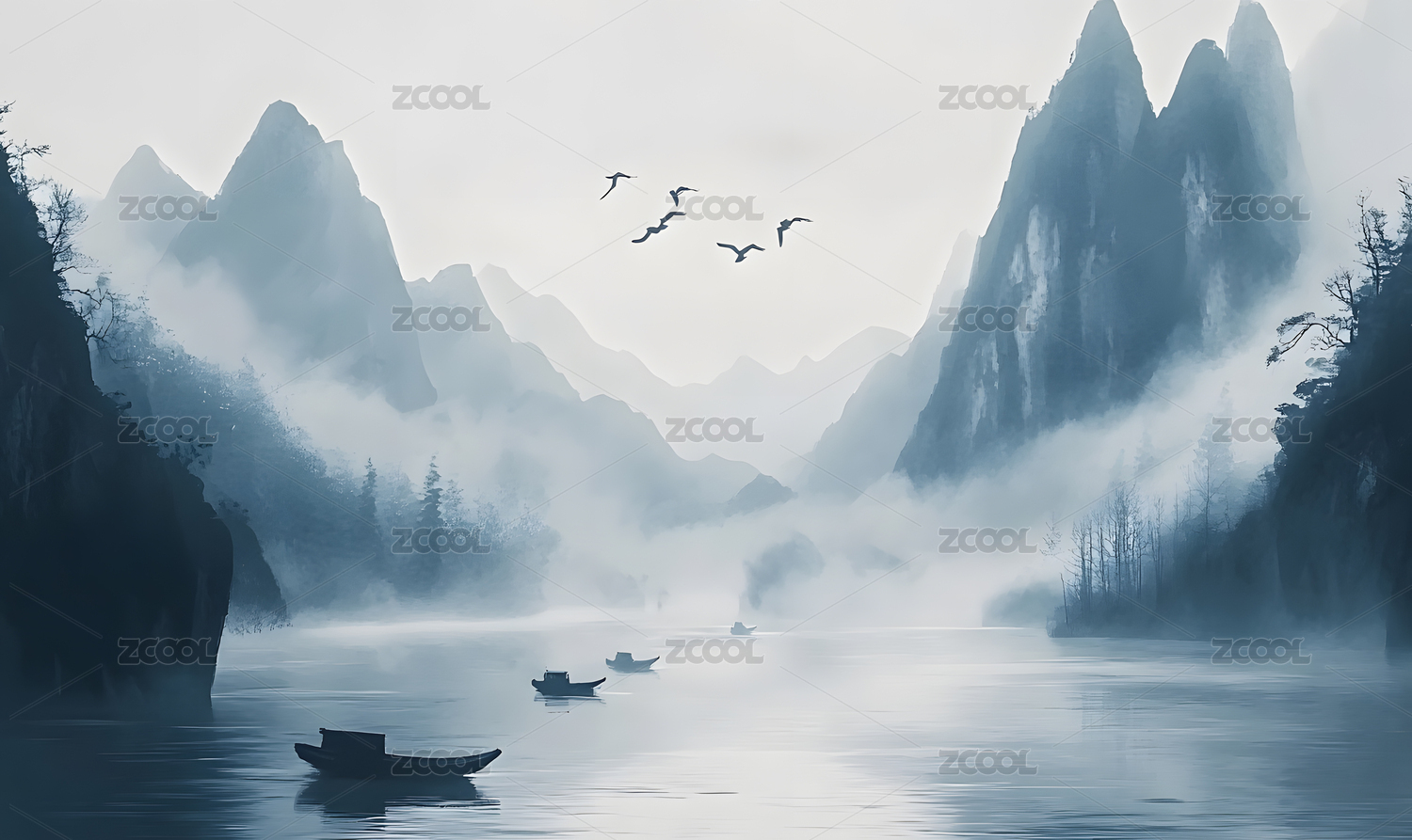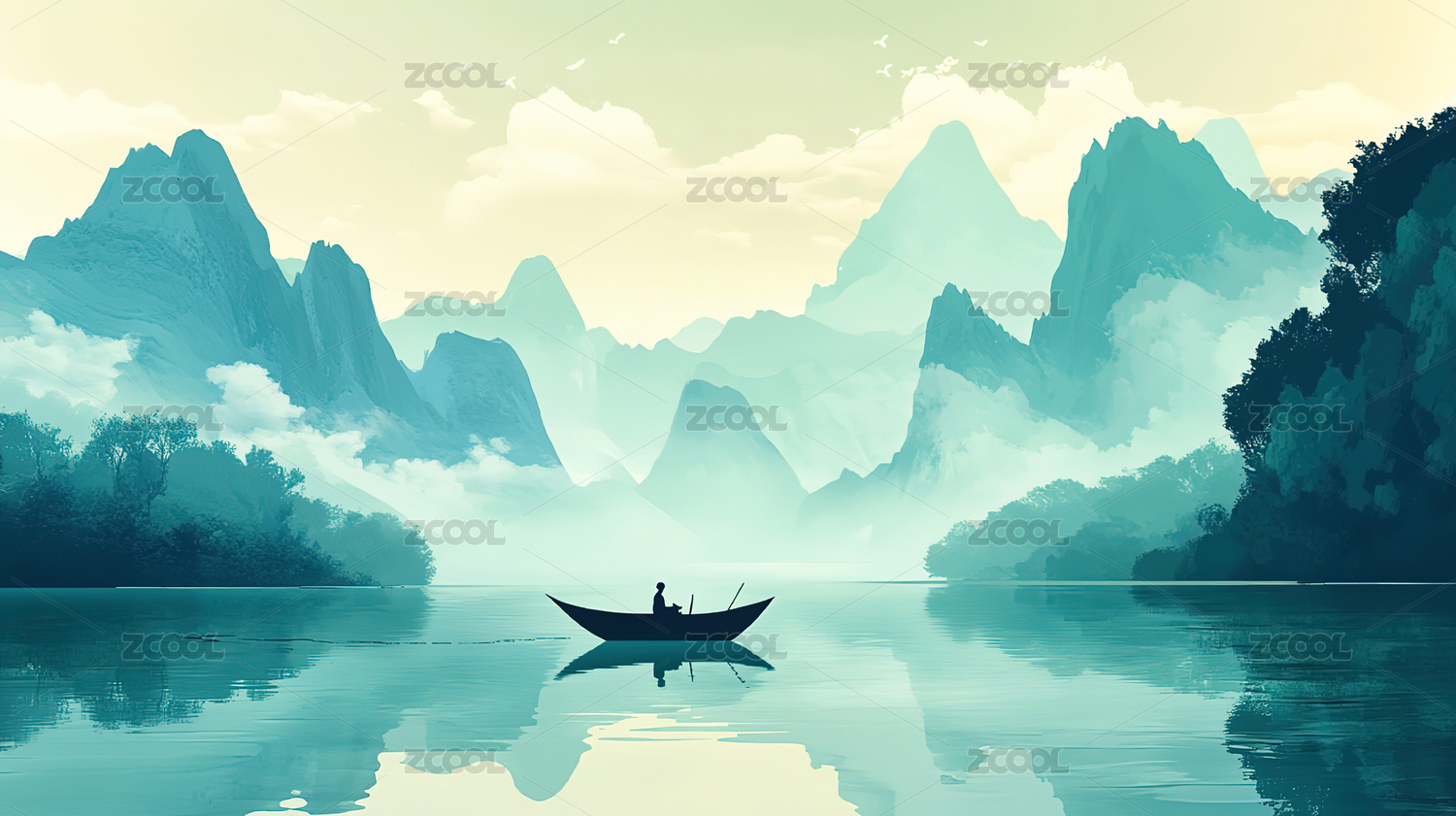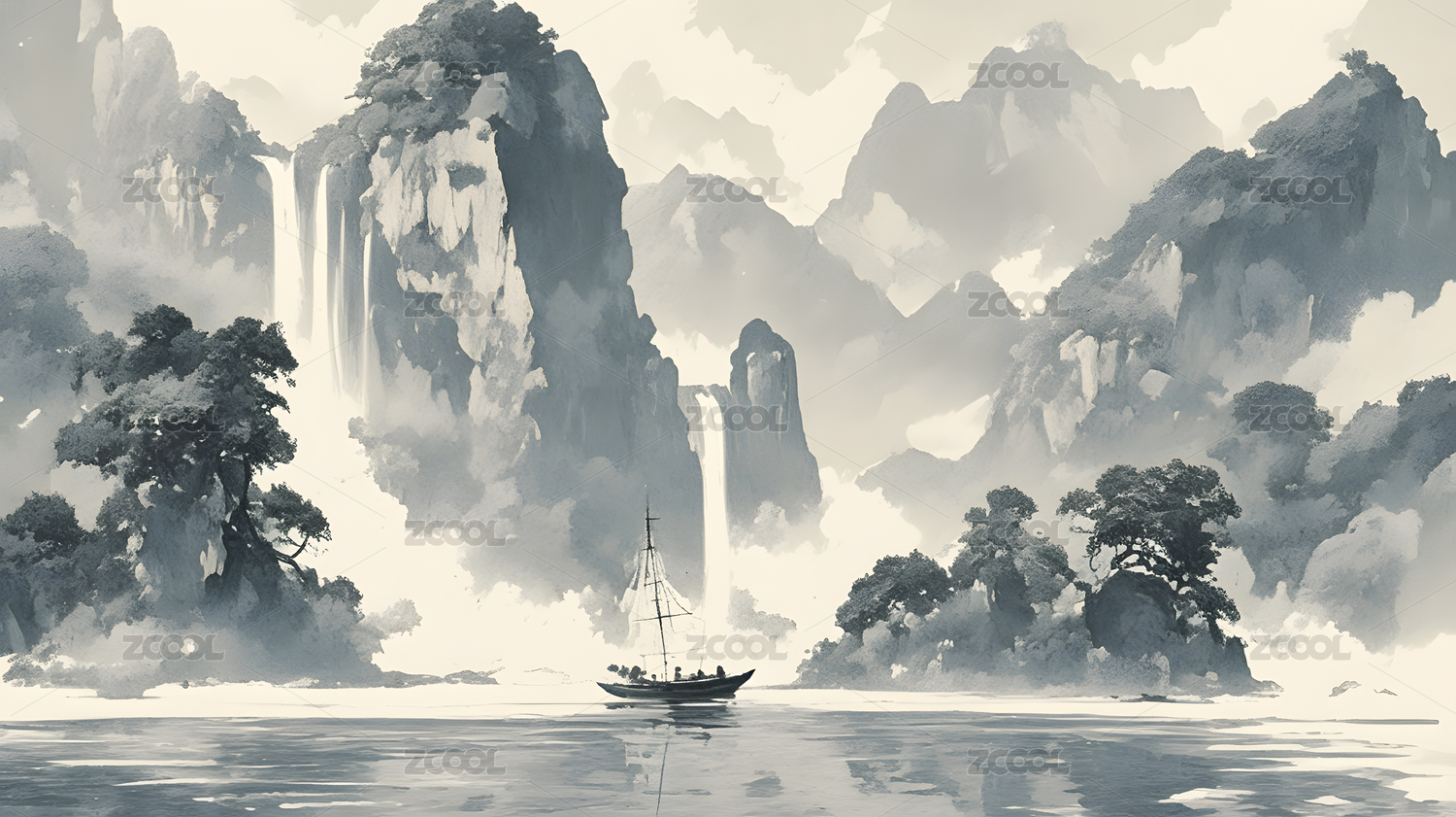 高山,地形,无人,AI数字艺术,自然,户外,天空,宁静,水,雾
