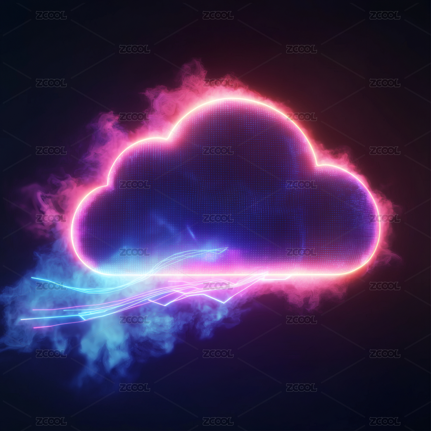 未来科技感的霓虹灯云朵图案