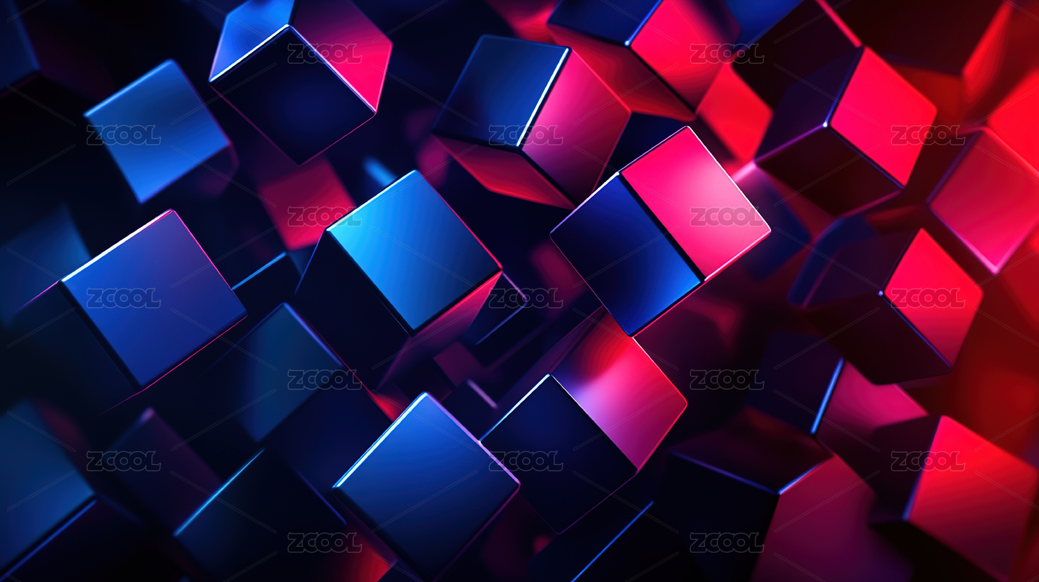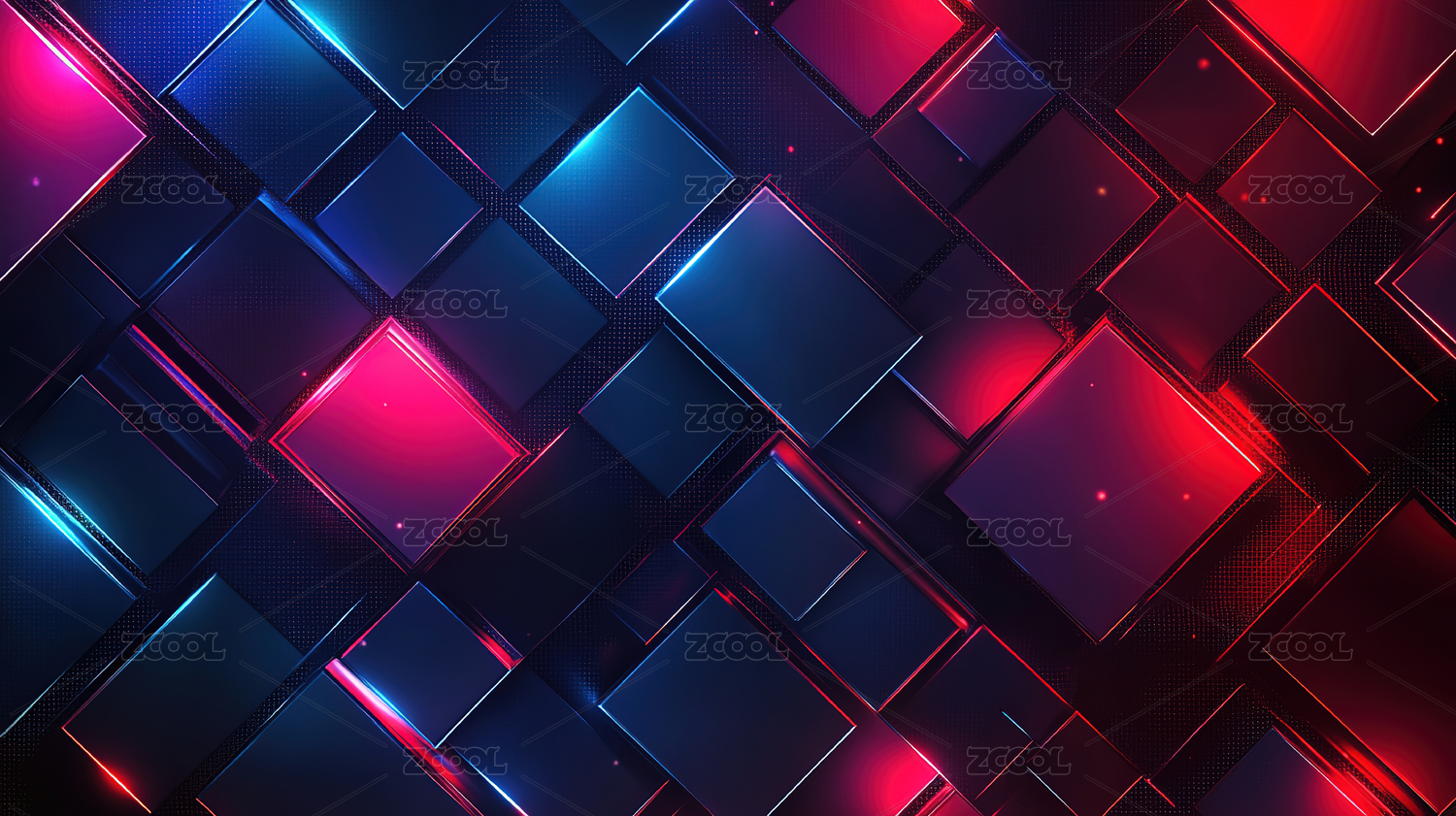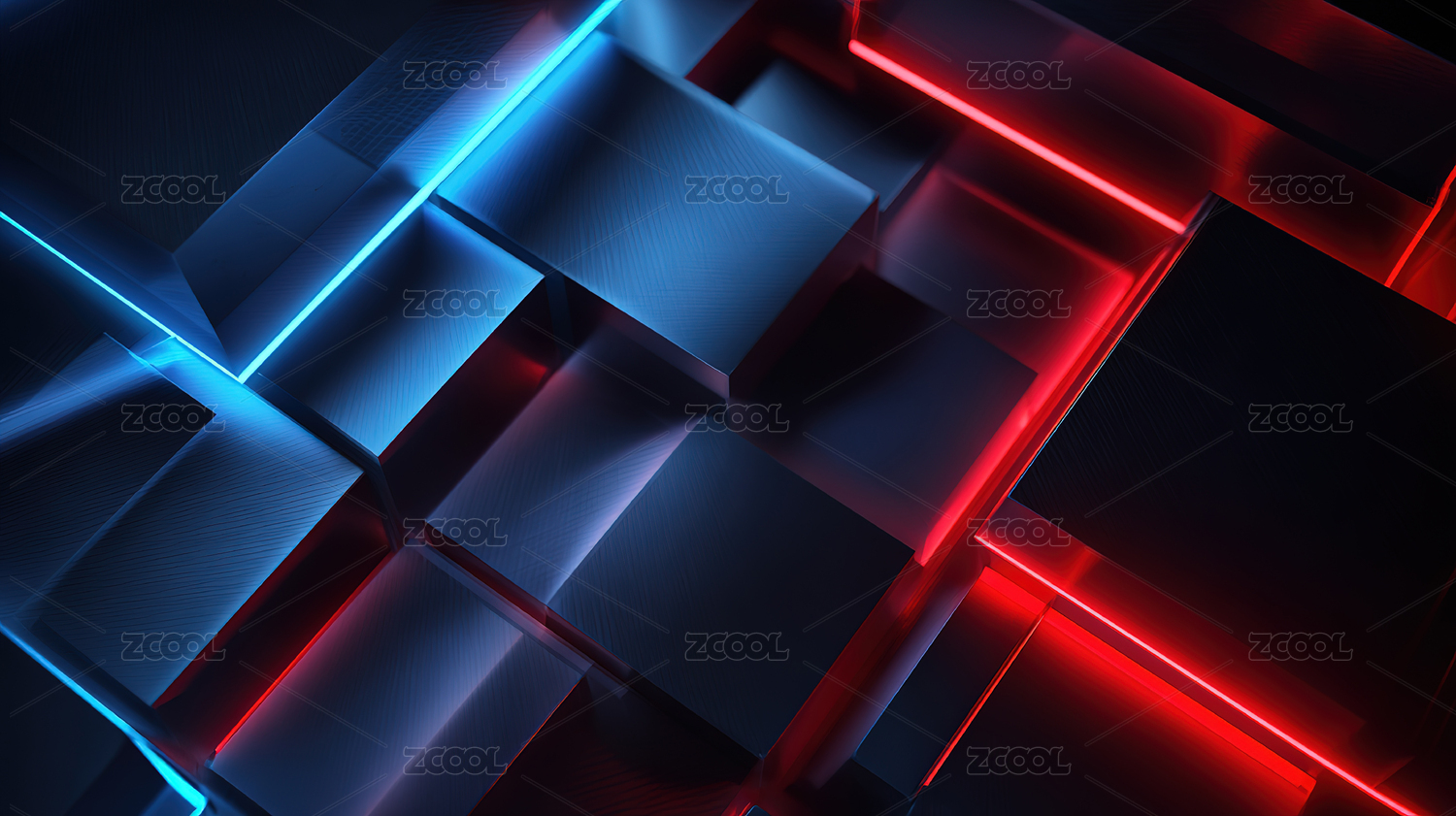蓝红光影交错的抽象几何图形