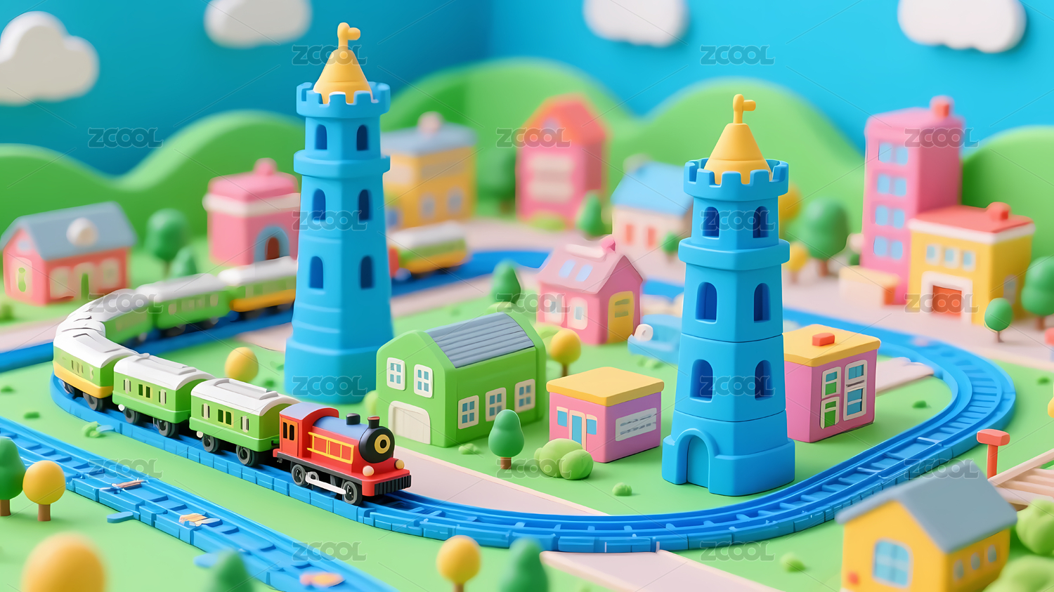 六一儿童节童年玩具礼物庆祝节日3D插画