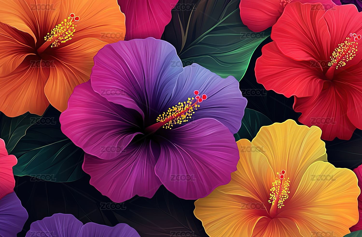 彩色线条花卉重复无缝图案纺织品装饰背景