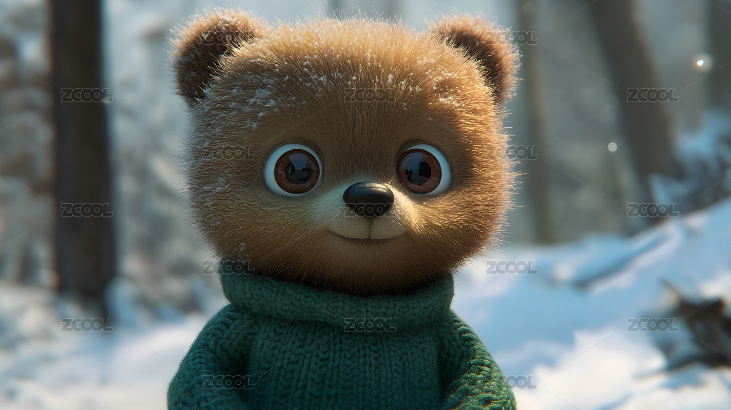 三维,立体,3D,卡通,可爱,毛绒,小熊,毛衣,冬季,温暖