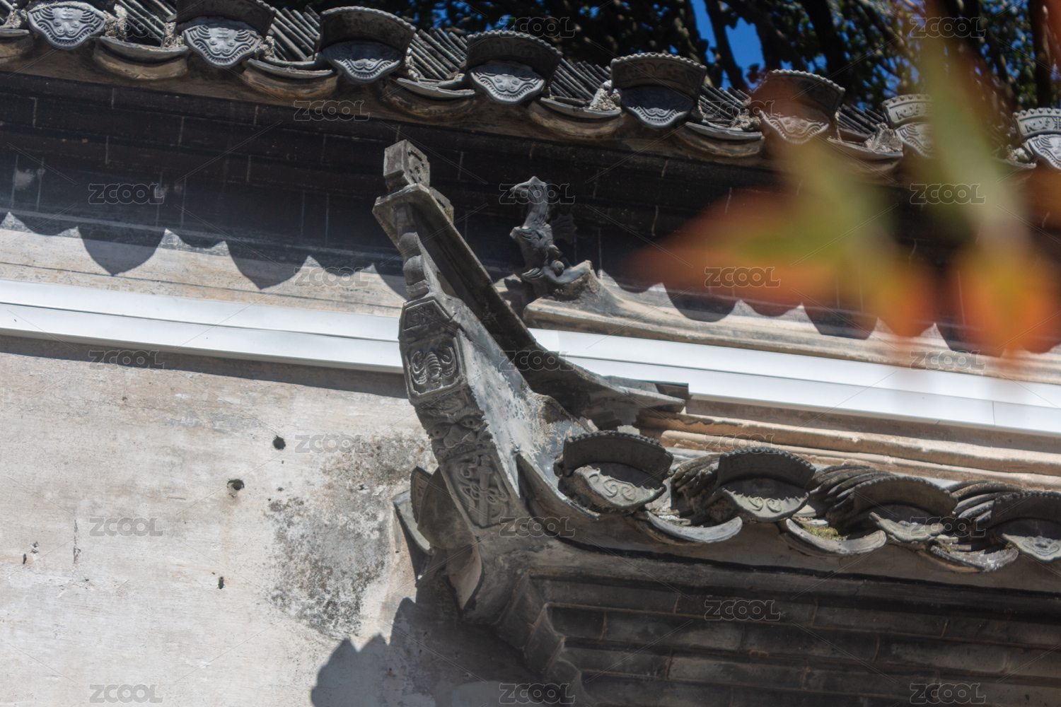 中国浙江宁波慈城火神庙硬山顶正脊、山墙与青瓦特写
