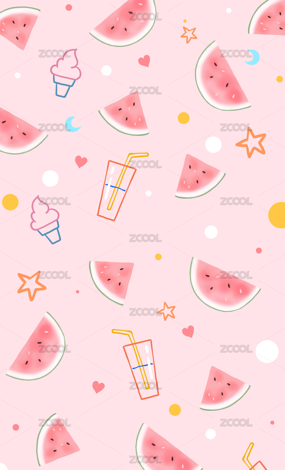 夏天清爽西瓜壁纸家纺无缝印刷图案