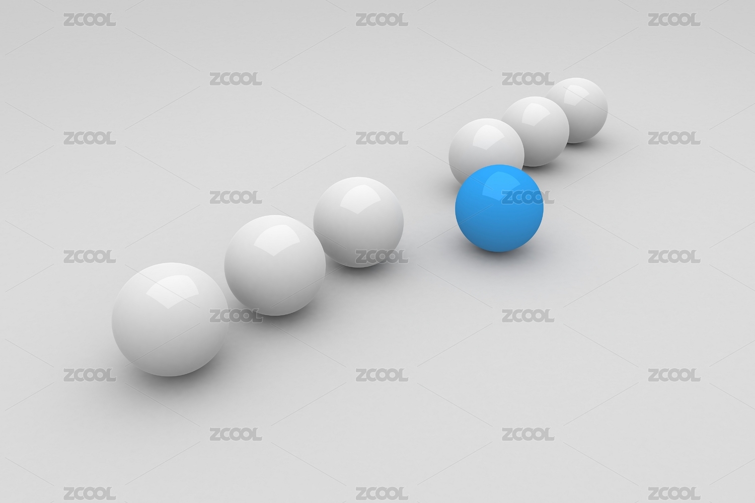 蓝色的球站立于白色队列之前,团队组织领导概念
