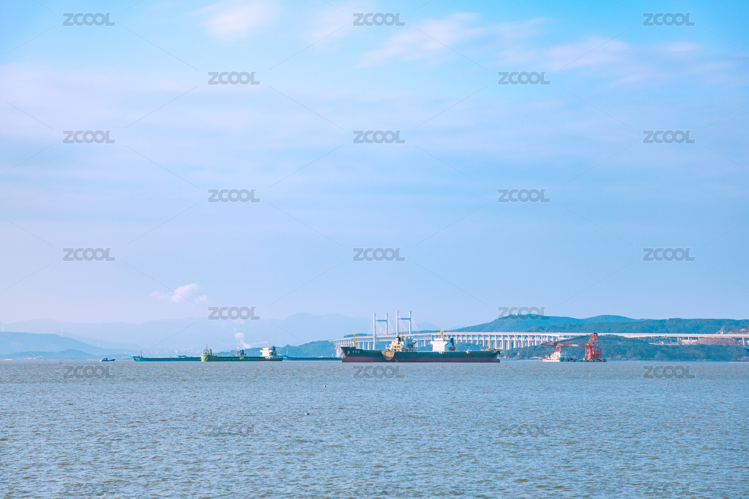 福建省福州市平潭岛-蓝天白云下的海港码头