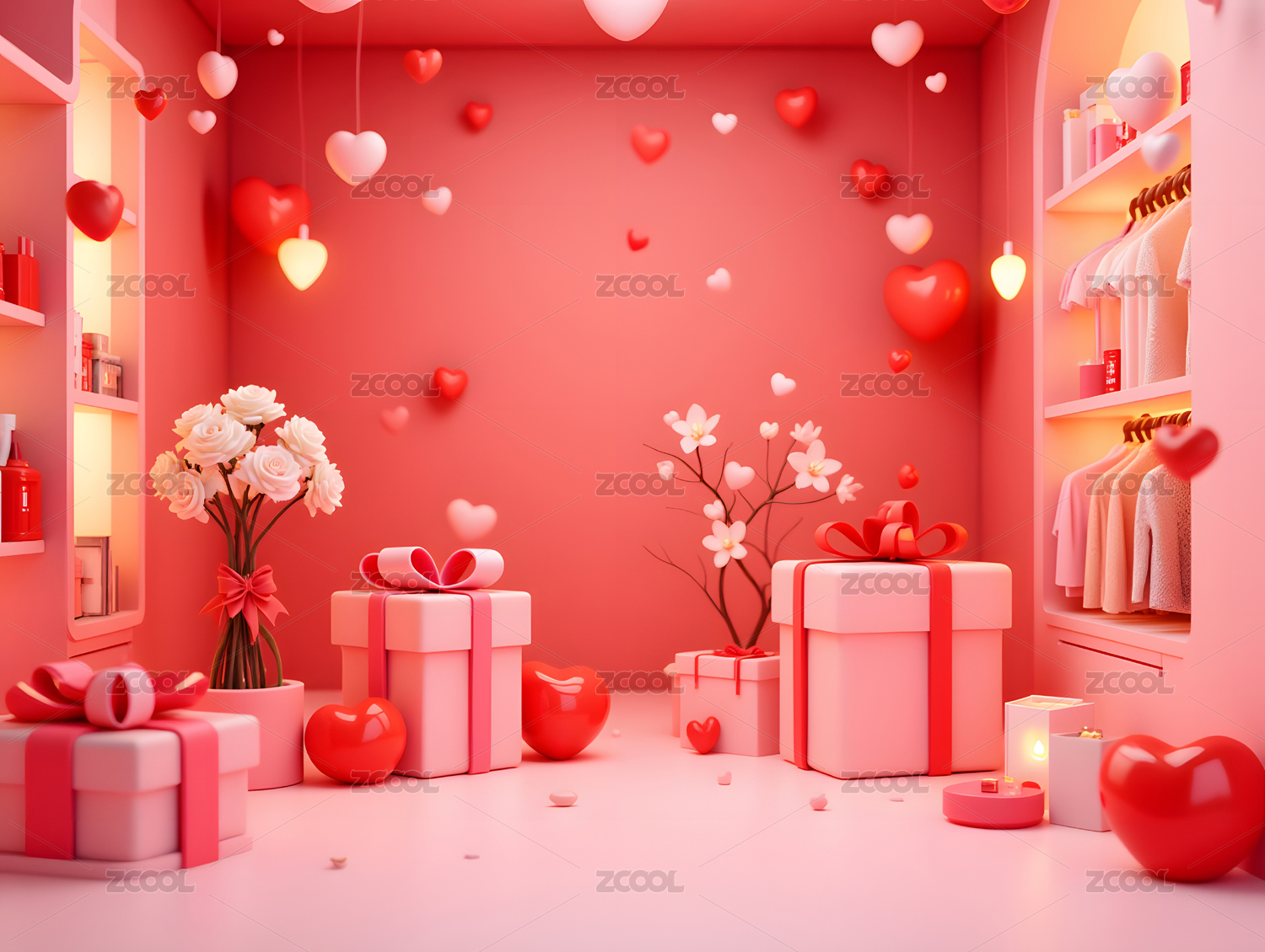 七夕情人节带气球的礼物盒展台爱情主题背景