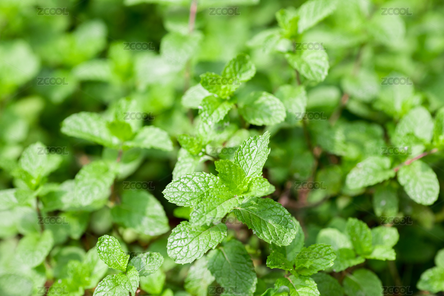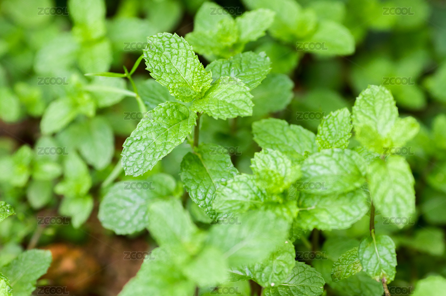 种植生长的薄荷叶特写