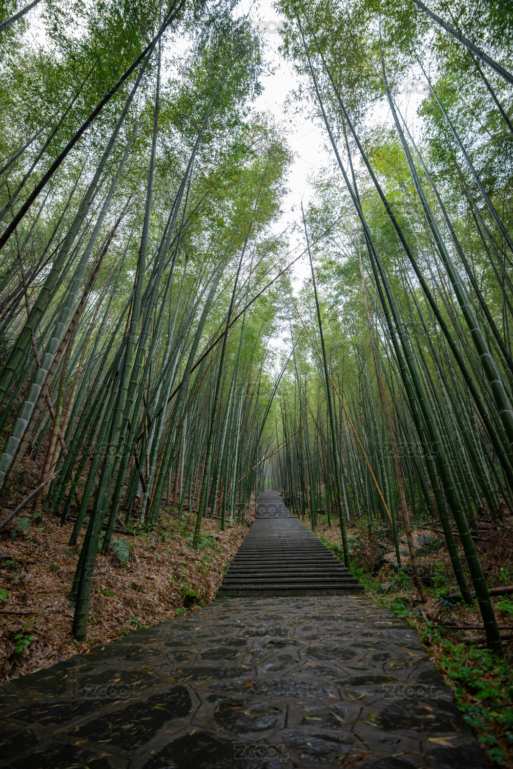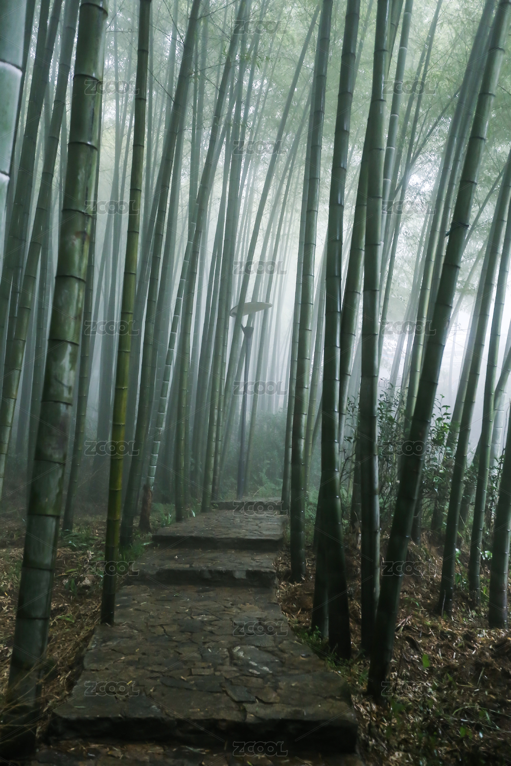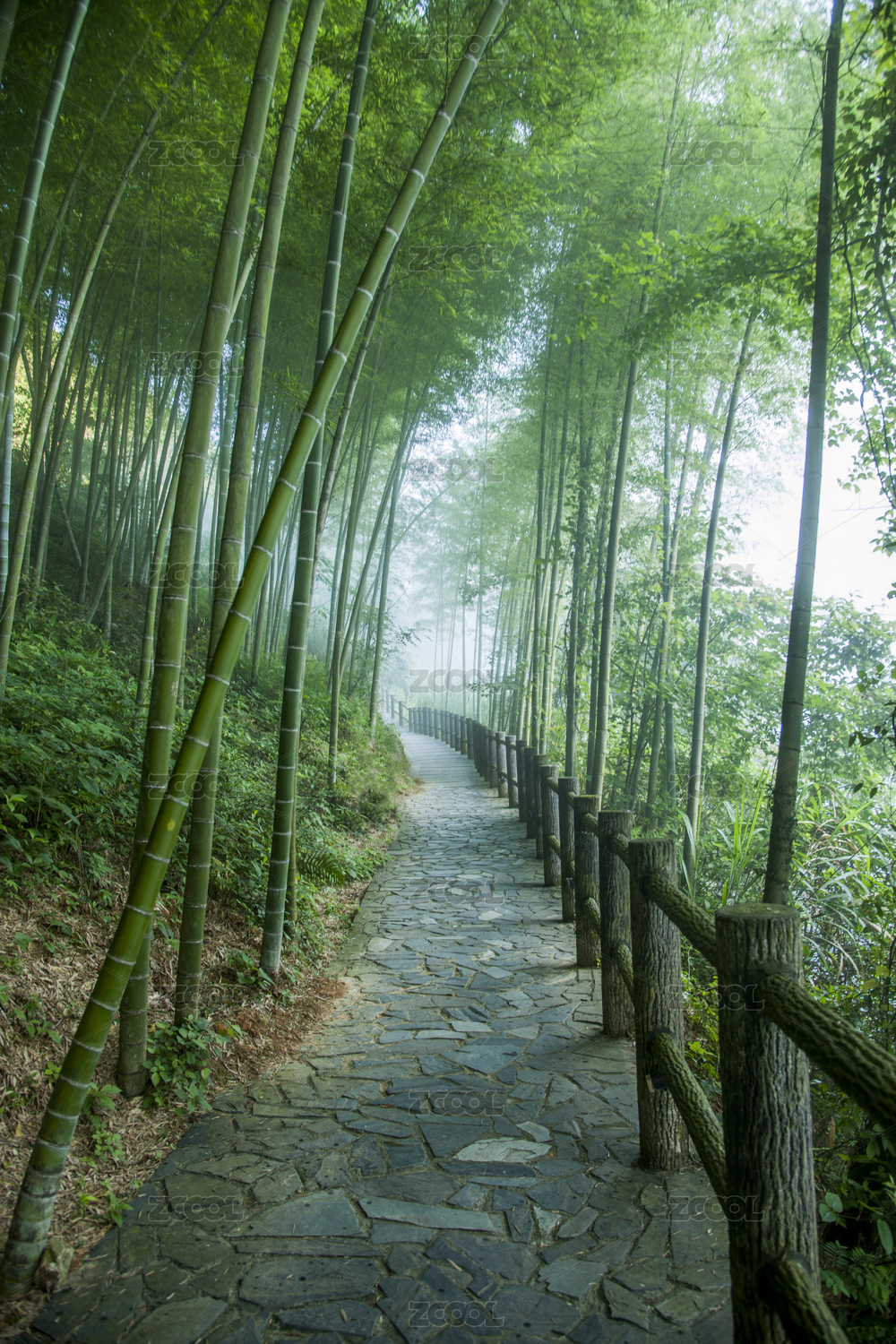 重庆茶山竹海雾中竹林步道