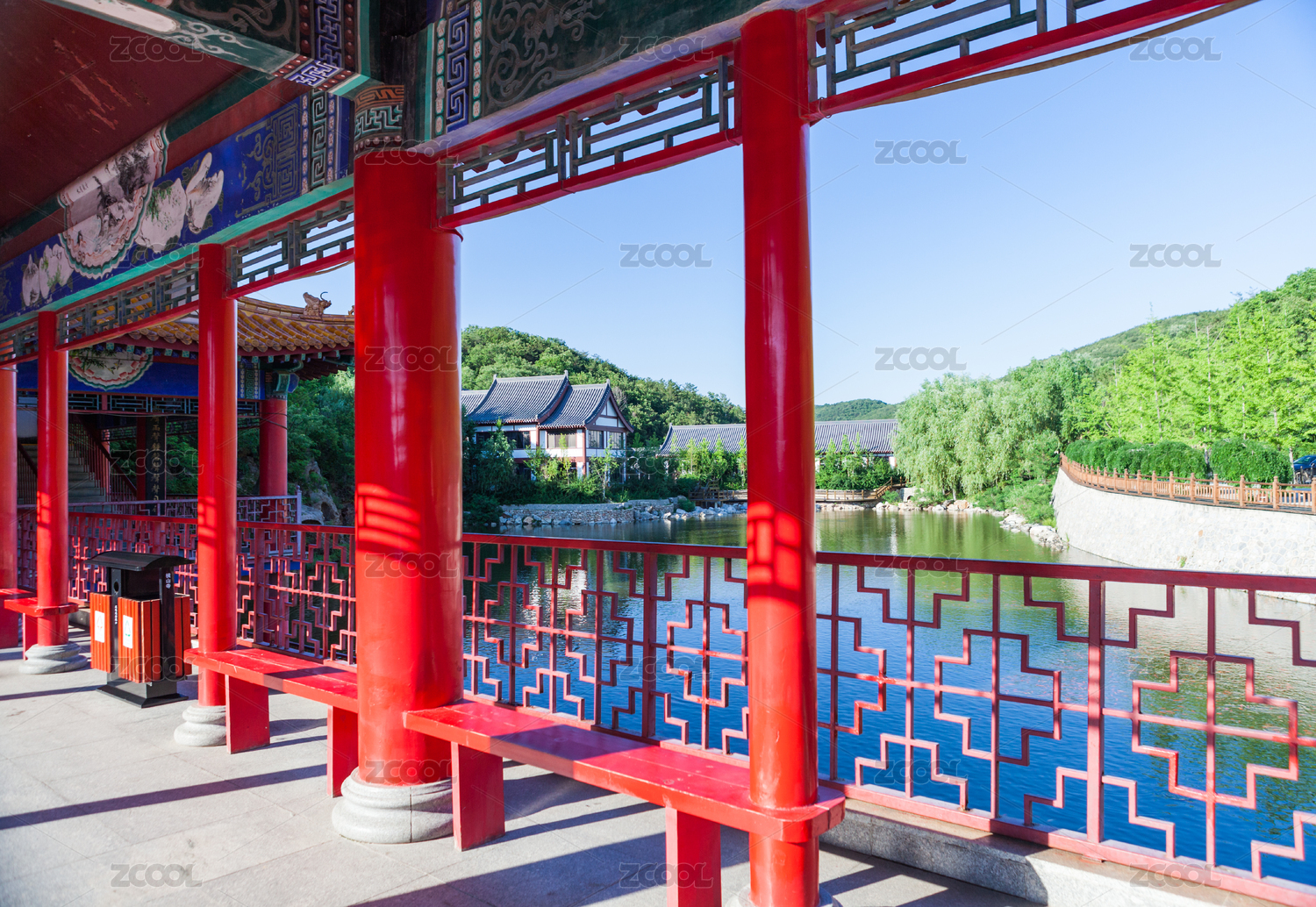 吉林市炮台山文化主题公园上凉亭柱子局部特写