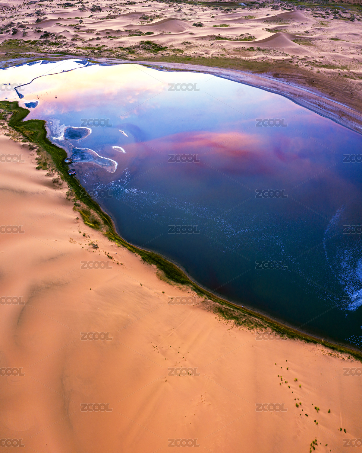 内蒙古阿拉善腾格里沙漠多彩的湖泊