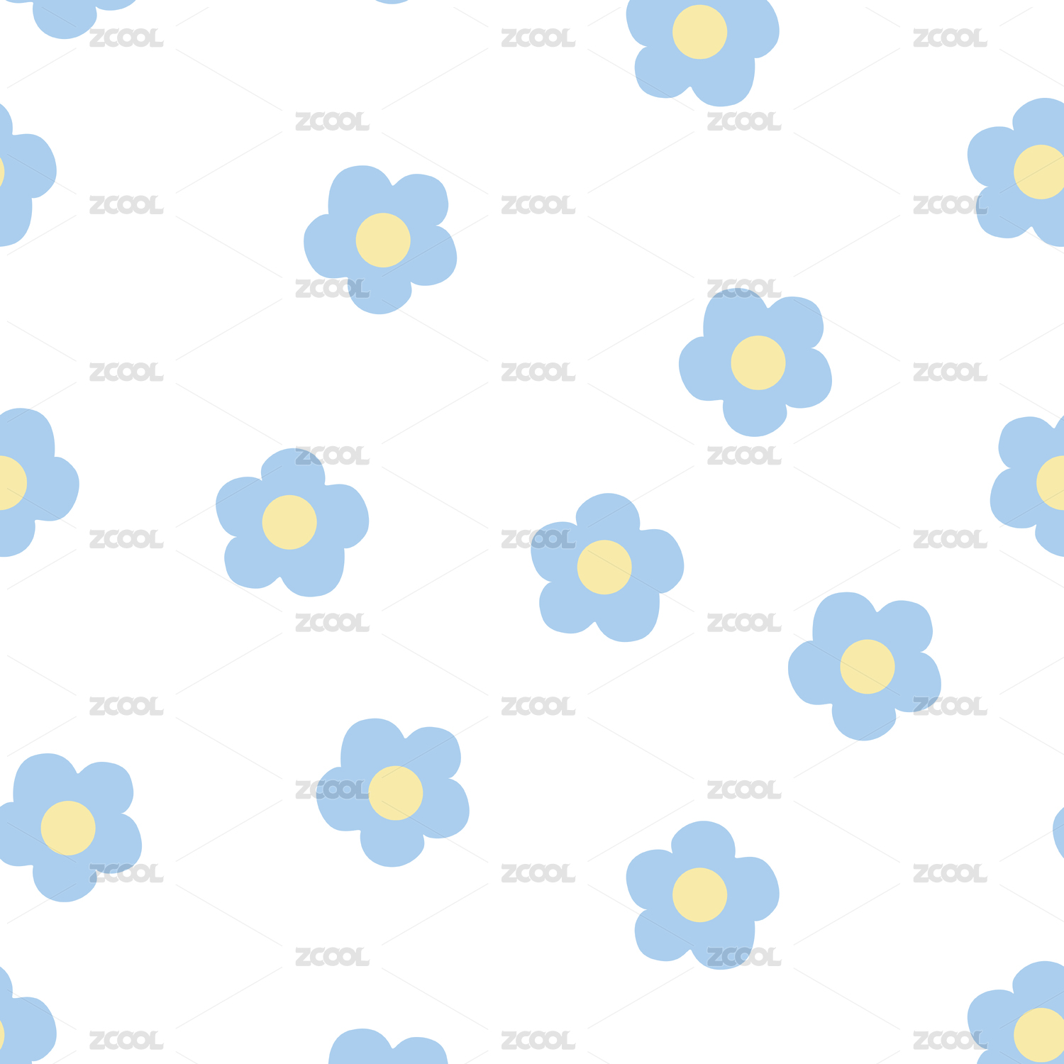 可爱单头花朵满版四方连续印花矢量图