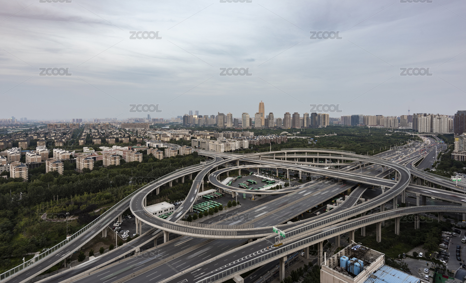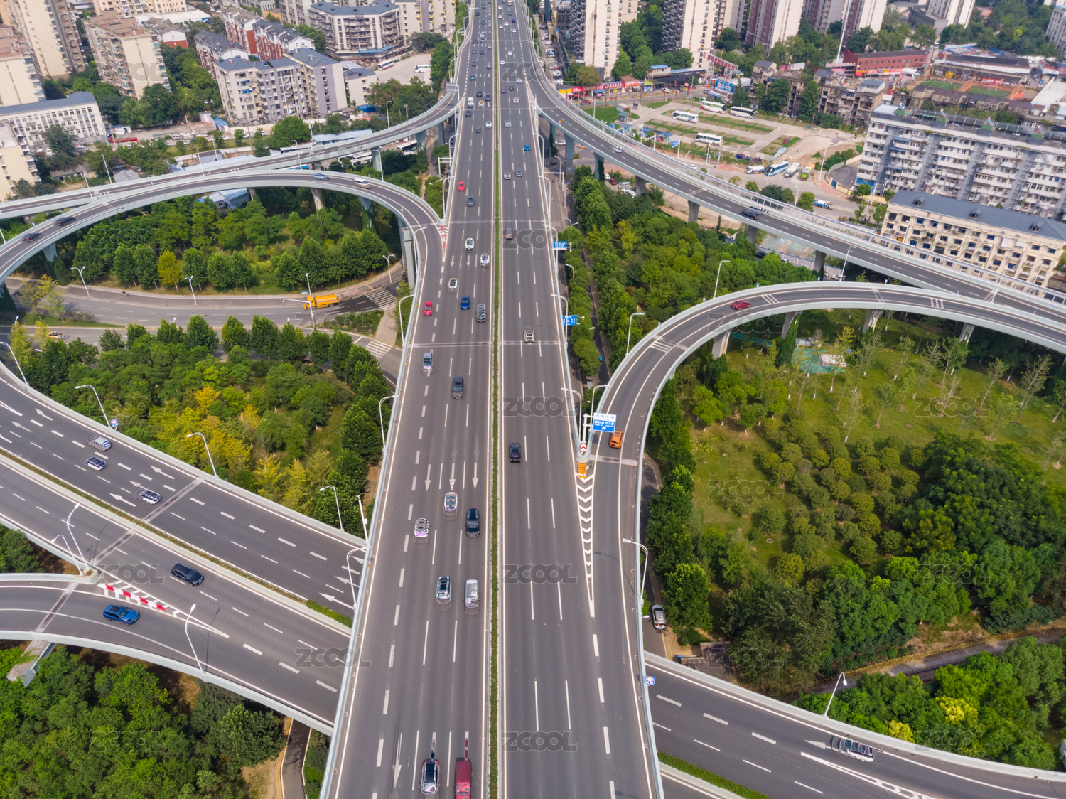 航拍武汉武昌梅家山立交与白沙洲大道高架桥