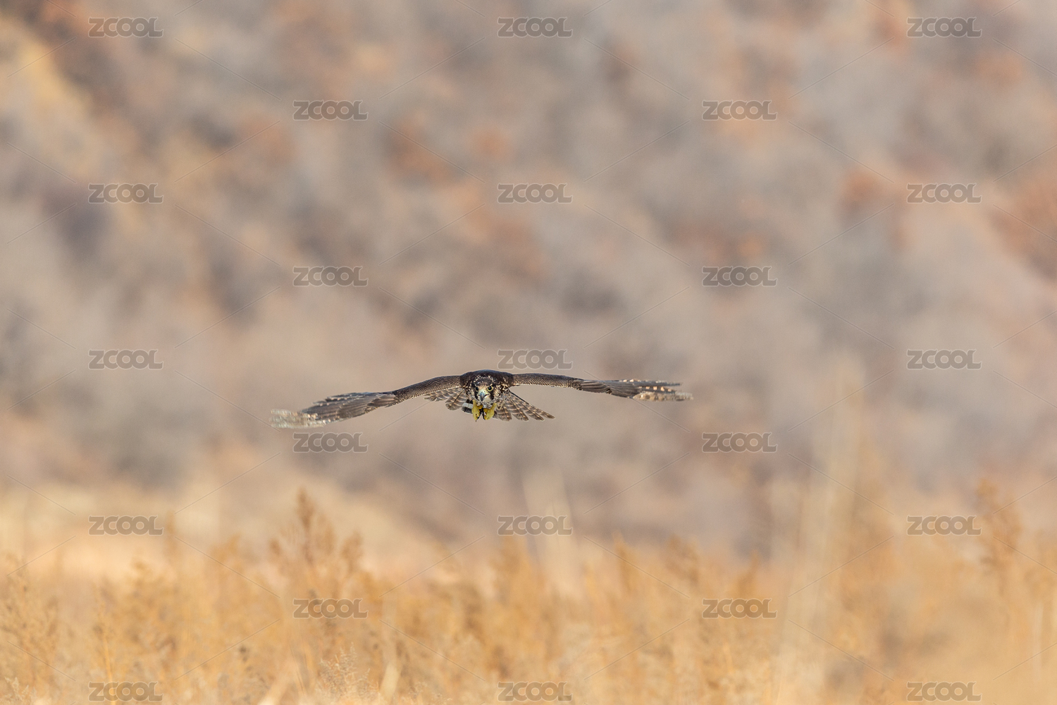 长尾林鸮在冬日阳光的田野空旷处飞翔觅食