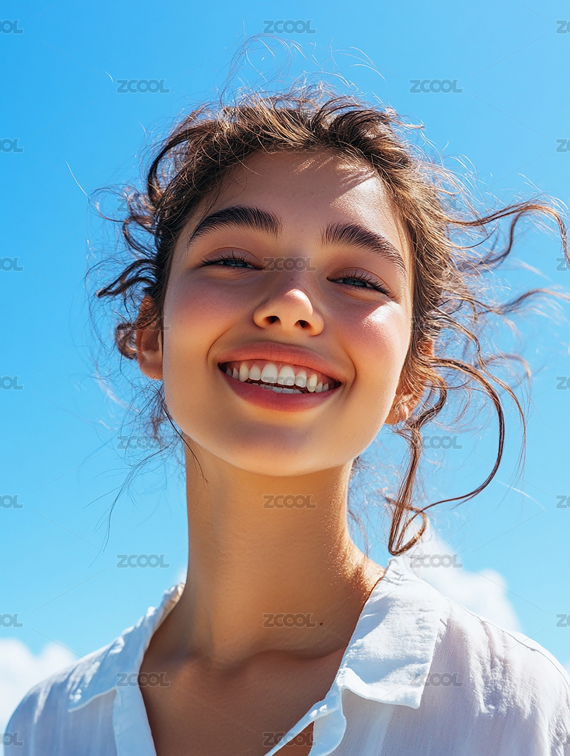 美女,女性,微笑女性,蓝天,美丽,女孩,模特,特写,美女特写,头像
