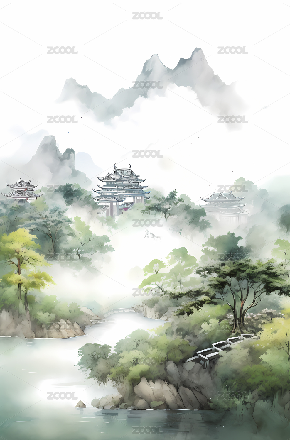山水画,水墨画,古风,国潮,新中式,山水插画,水墨风景,风景画,插画,意境