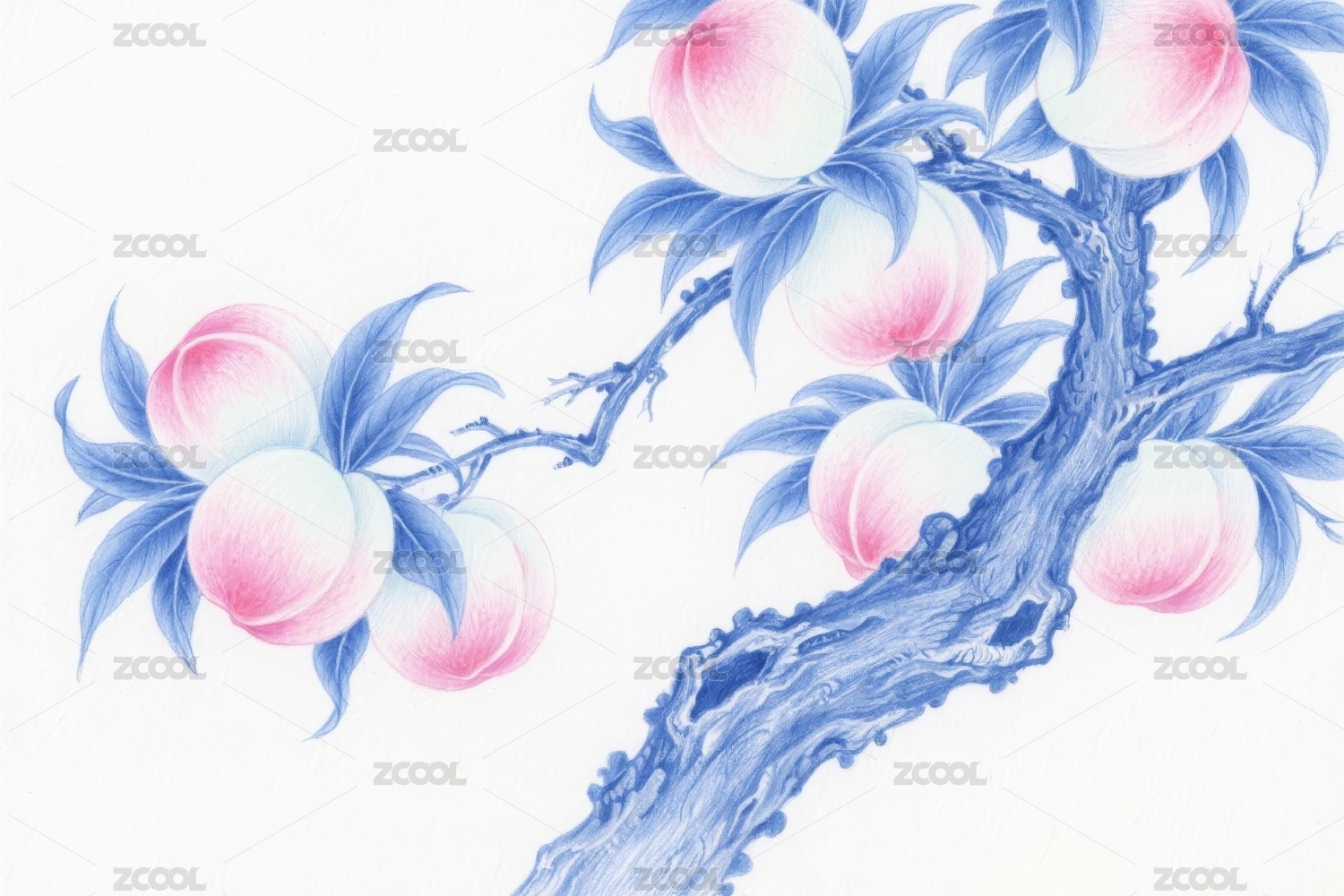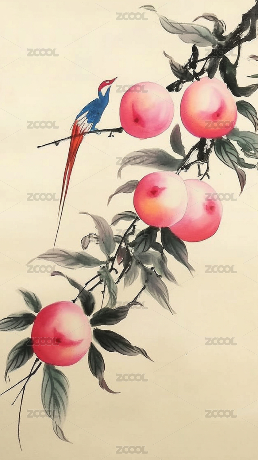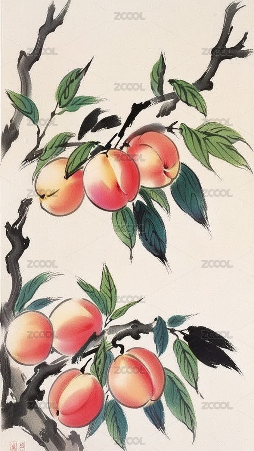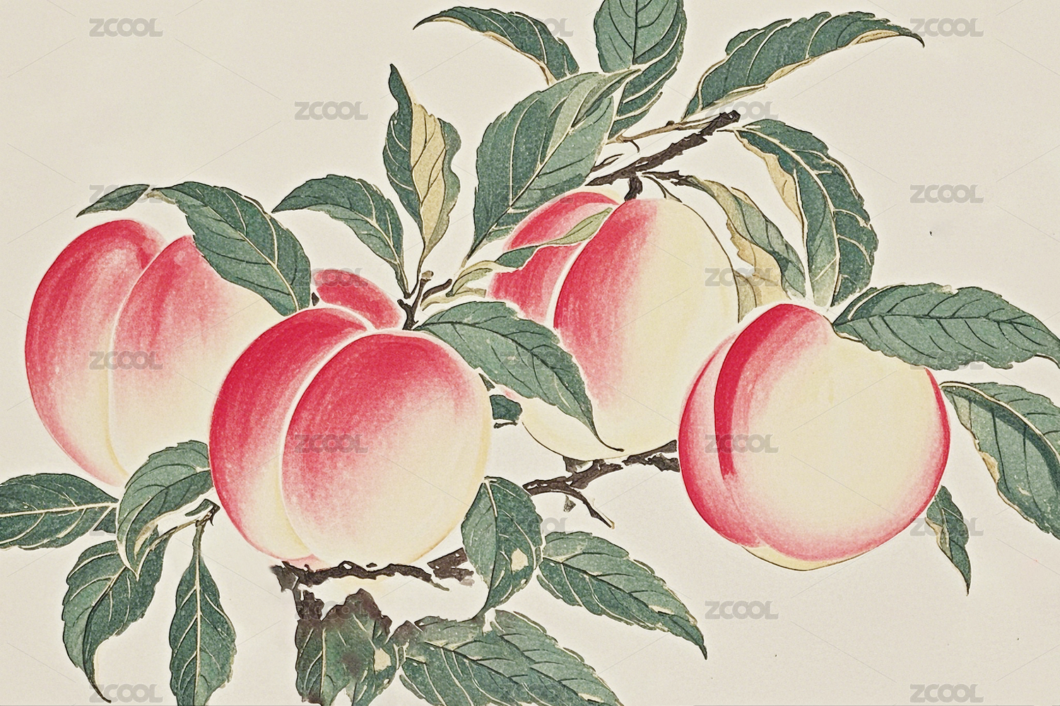 水果,AIGCFG,中国风,桃子,水蜜桃,美味,新鲜,插画,插图