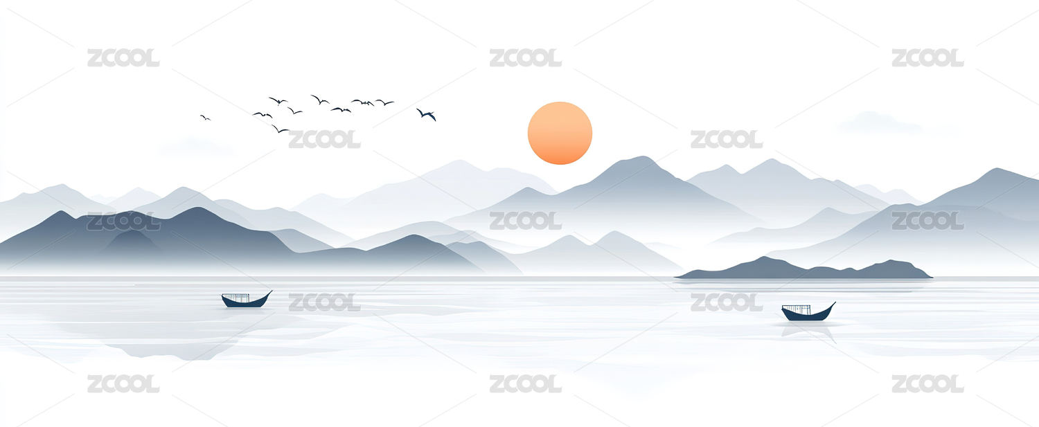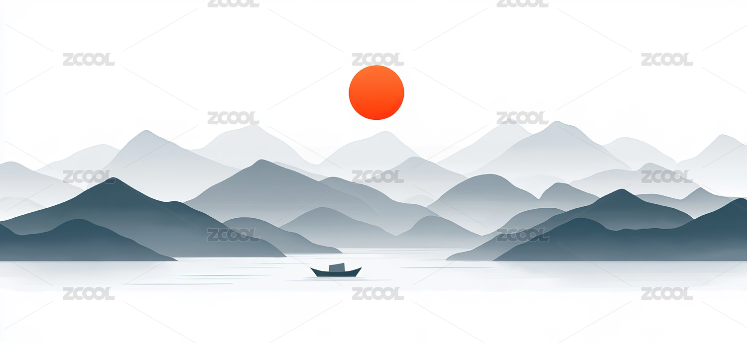水墨,山水画,禅意,插画,中国风,山,线条,抽象,山脉,意境