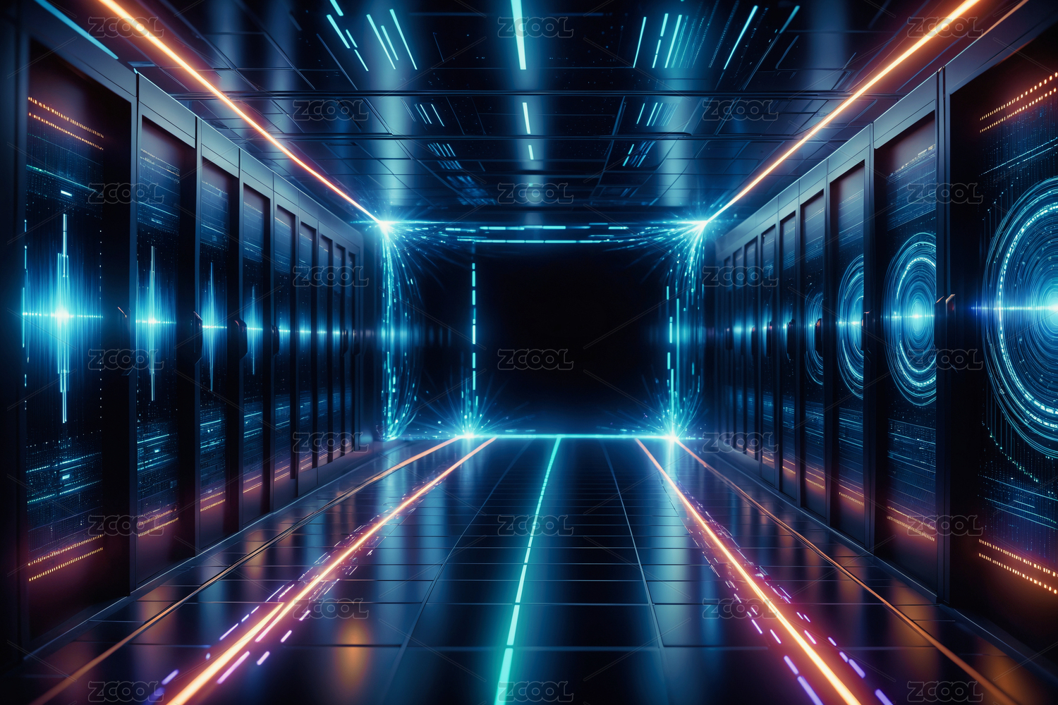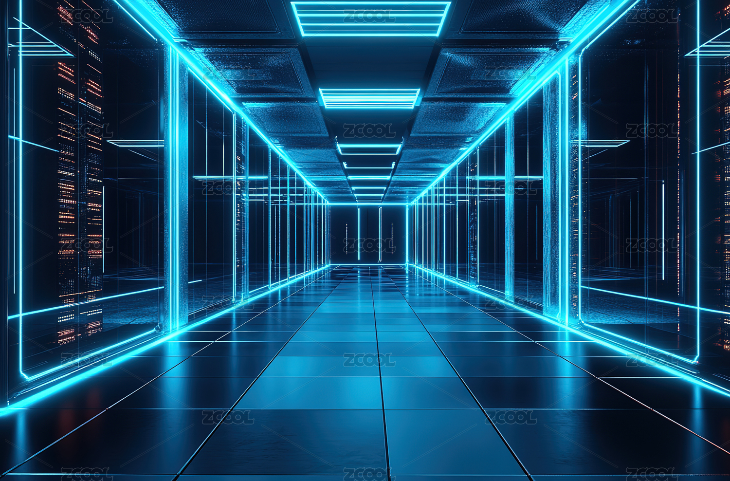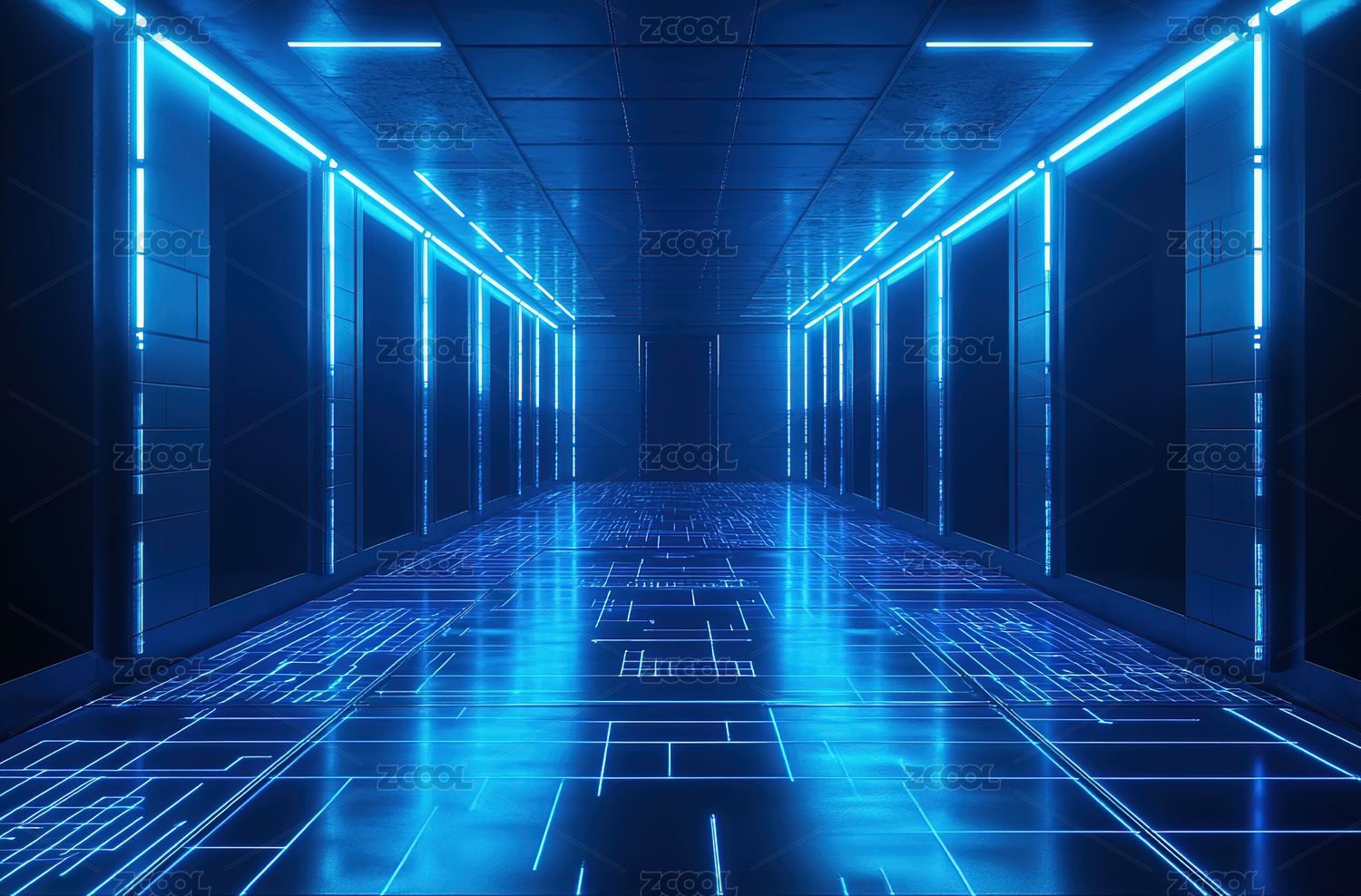 蓝色霓虹走廊尽头芯片