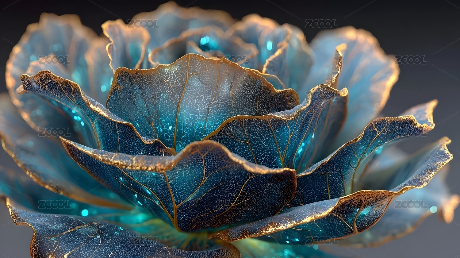 蓝色透明玻璃质感玫瑰