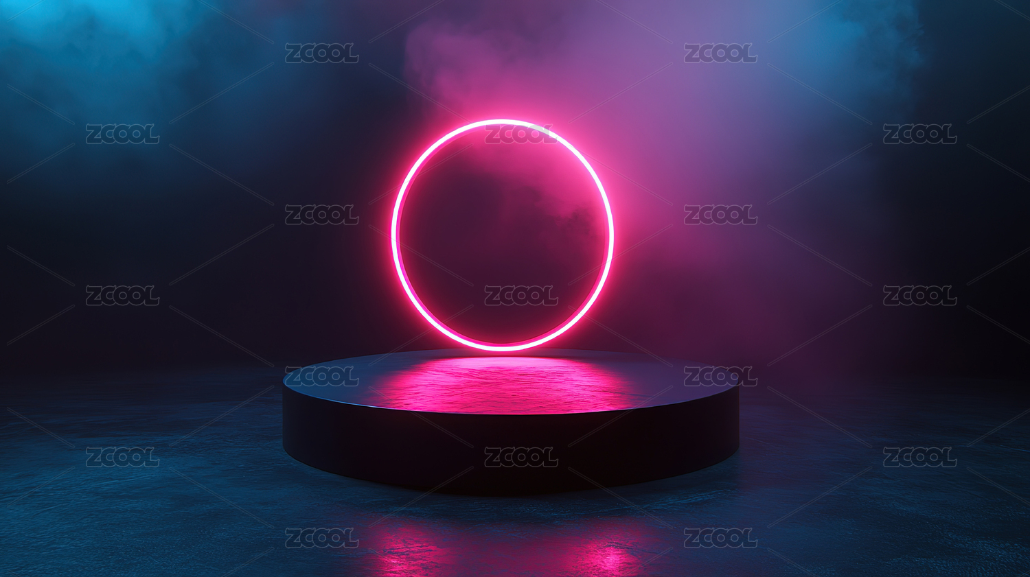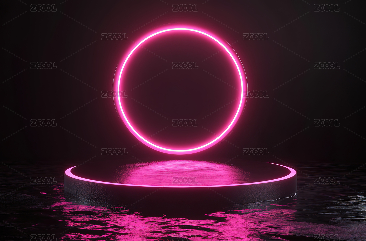 霓虹圆环与发光平台的未来感场景